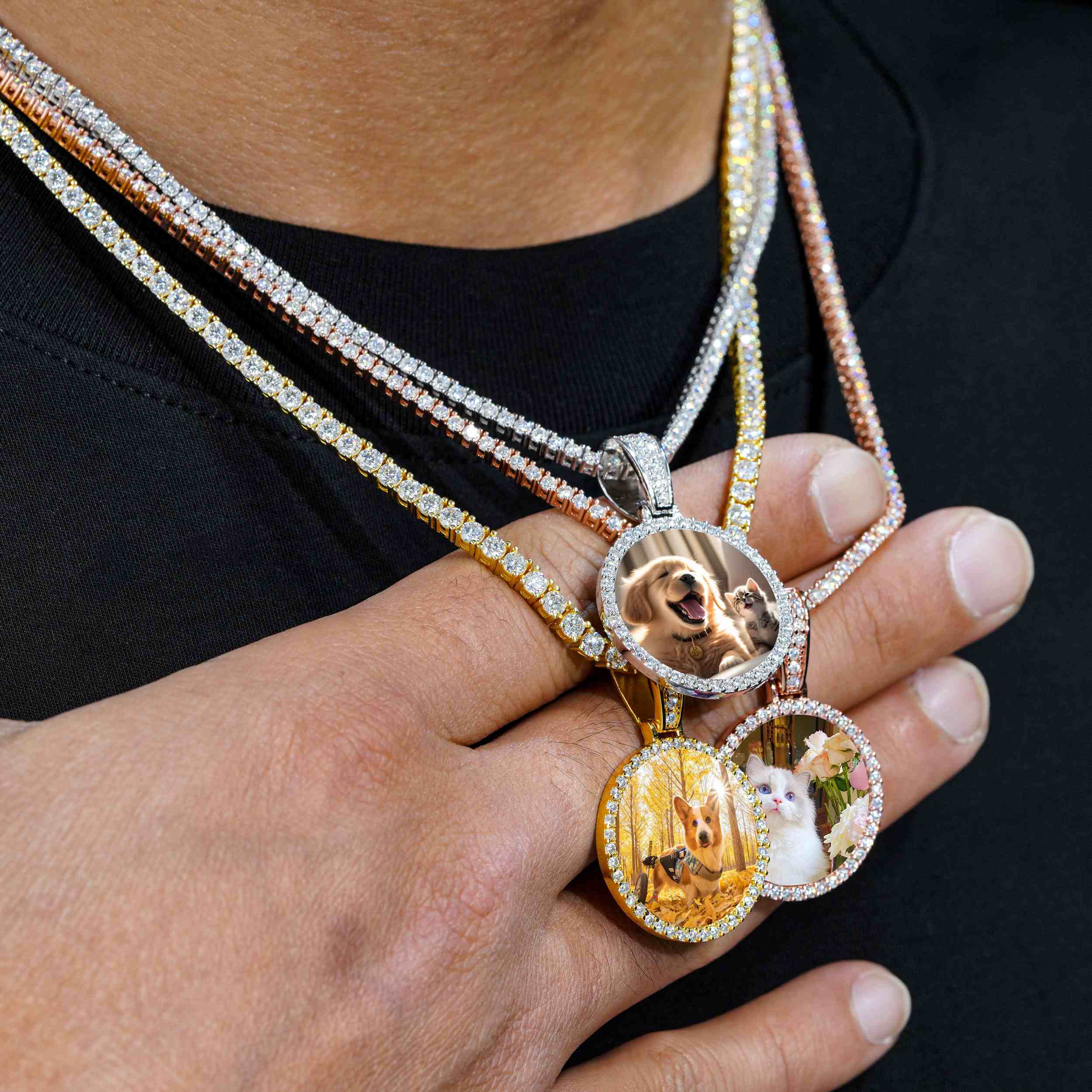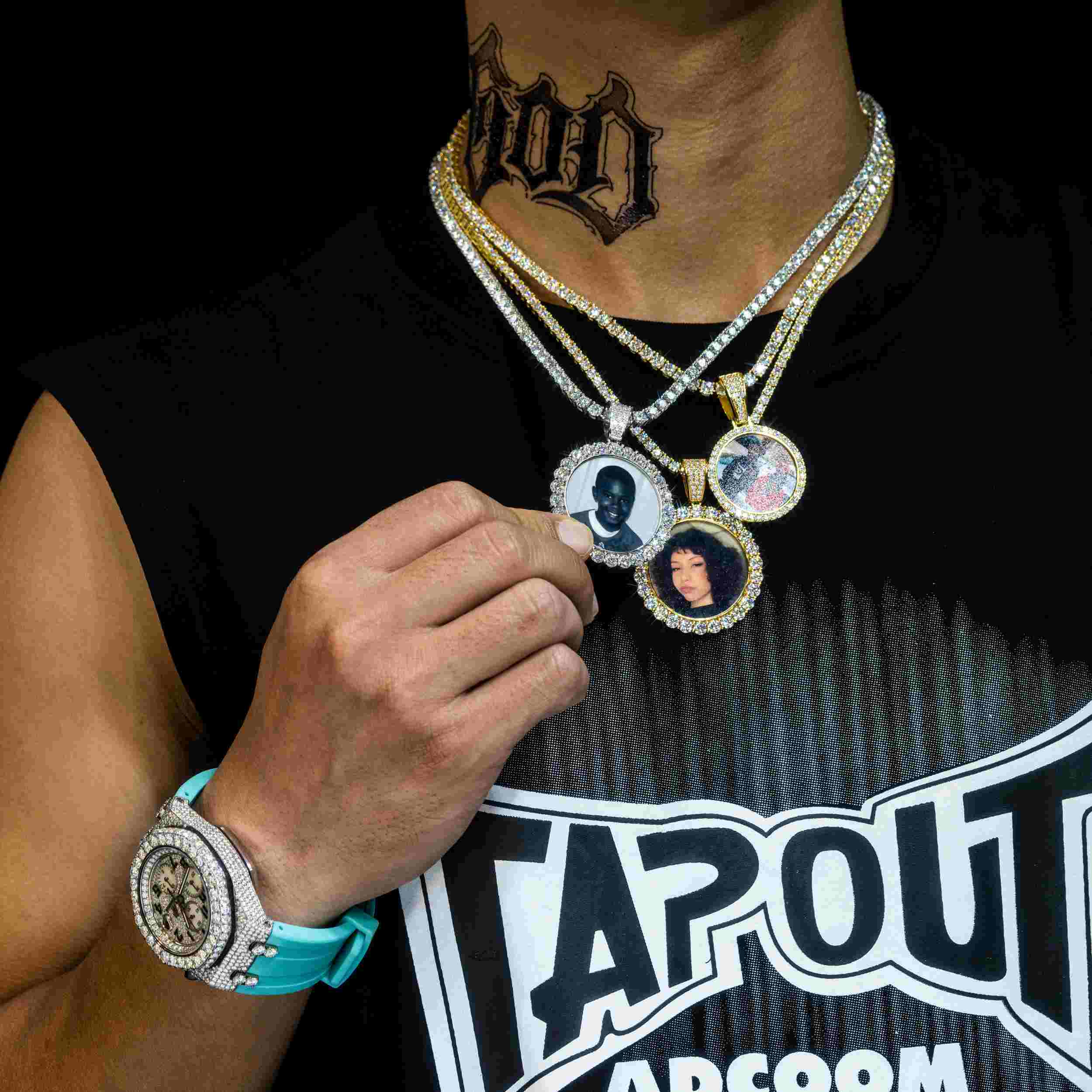 Adorn yourself with a Custom Photo Pendant VVS Moissanite Stone Pendant. This exquisite piece of jewelry features a 0.7-carat VVS Moissanite stone for a dazzling look. An adjustable chain adds the perfect finishing touch. Showcase your personal style with this beautiful pendant.