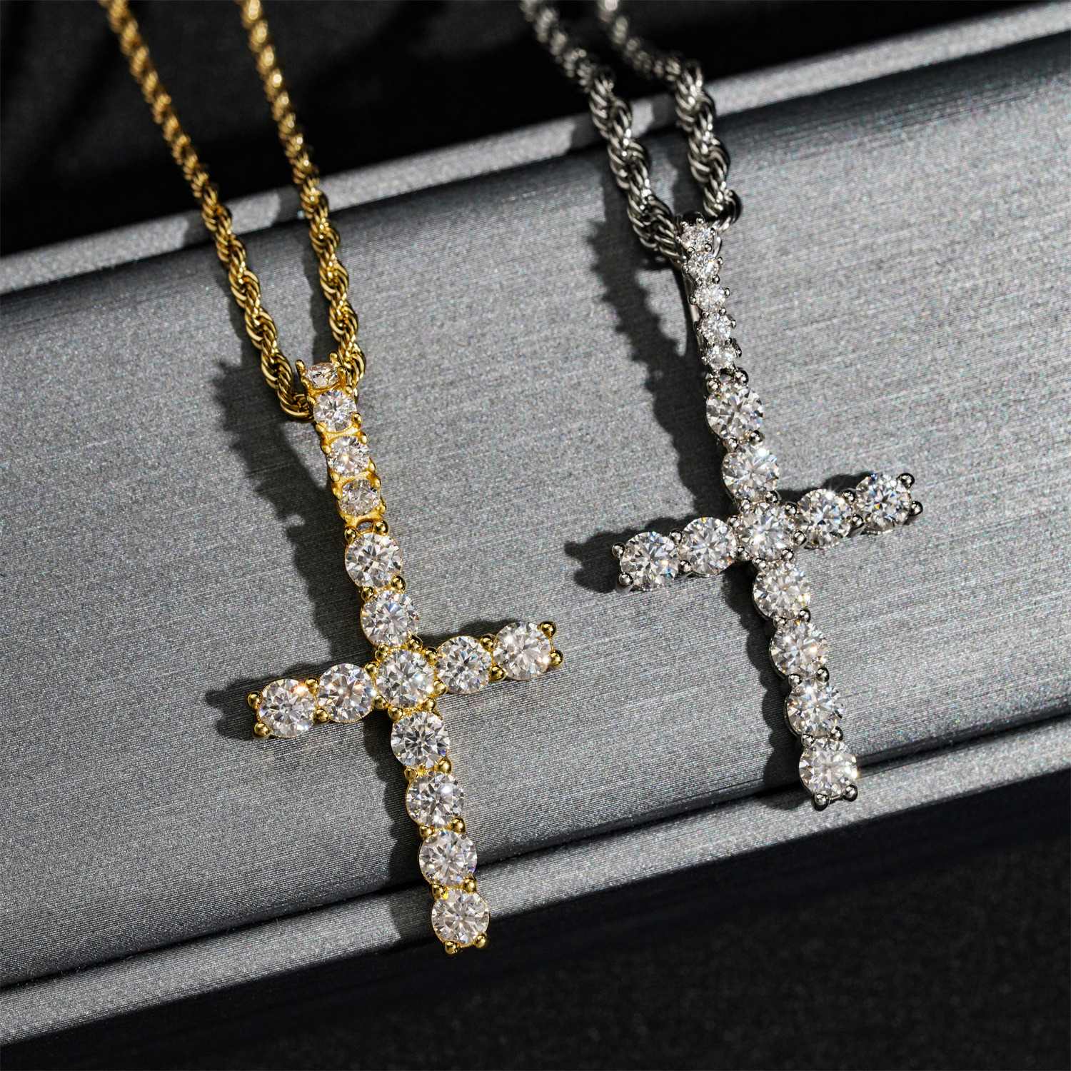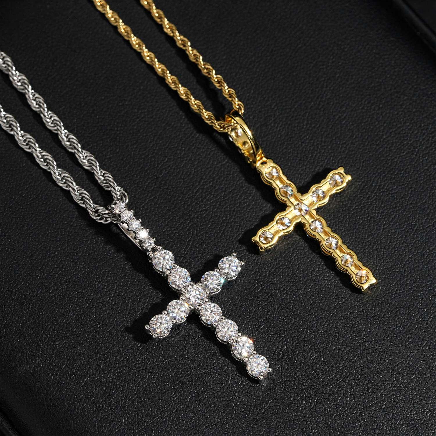 Cross 925 Sterling Silver prong inlay Moissanite Pendant