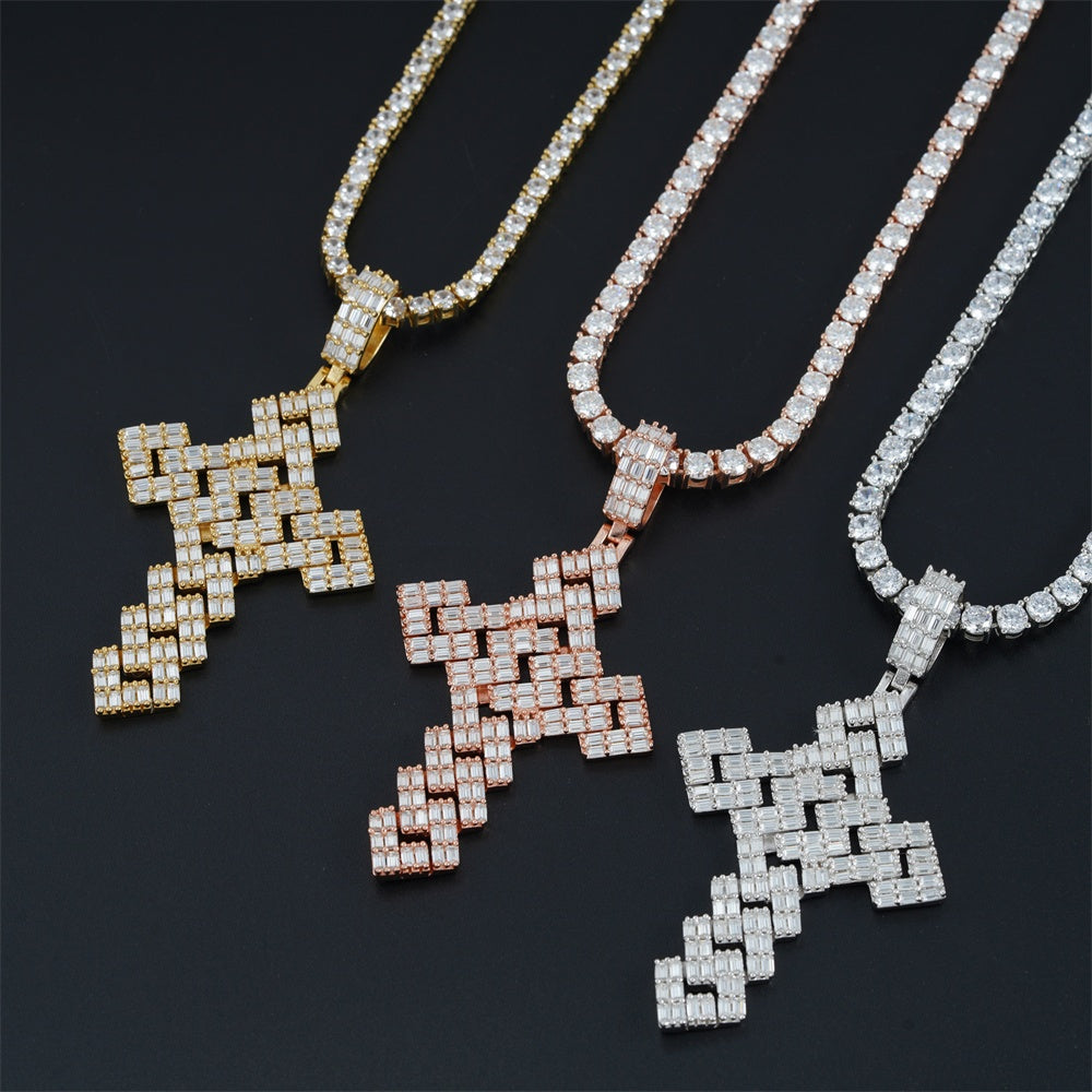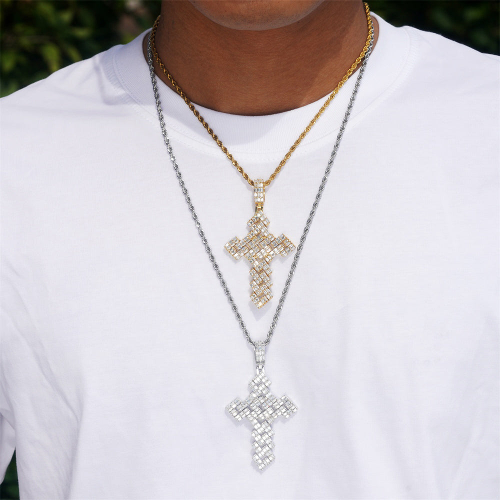 This Emerald Cut Cross Pendant is truly stunning and unique. It features an emerald-cut diamond in the center, The pendant's beautiful design will make it a showstopper for any special occasion.