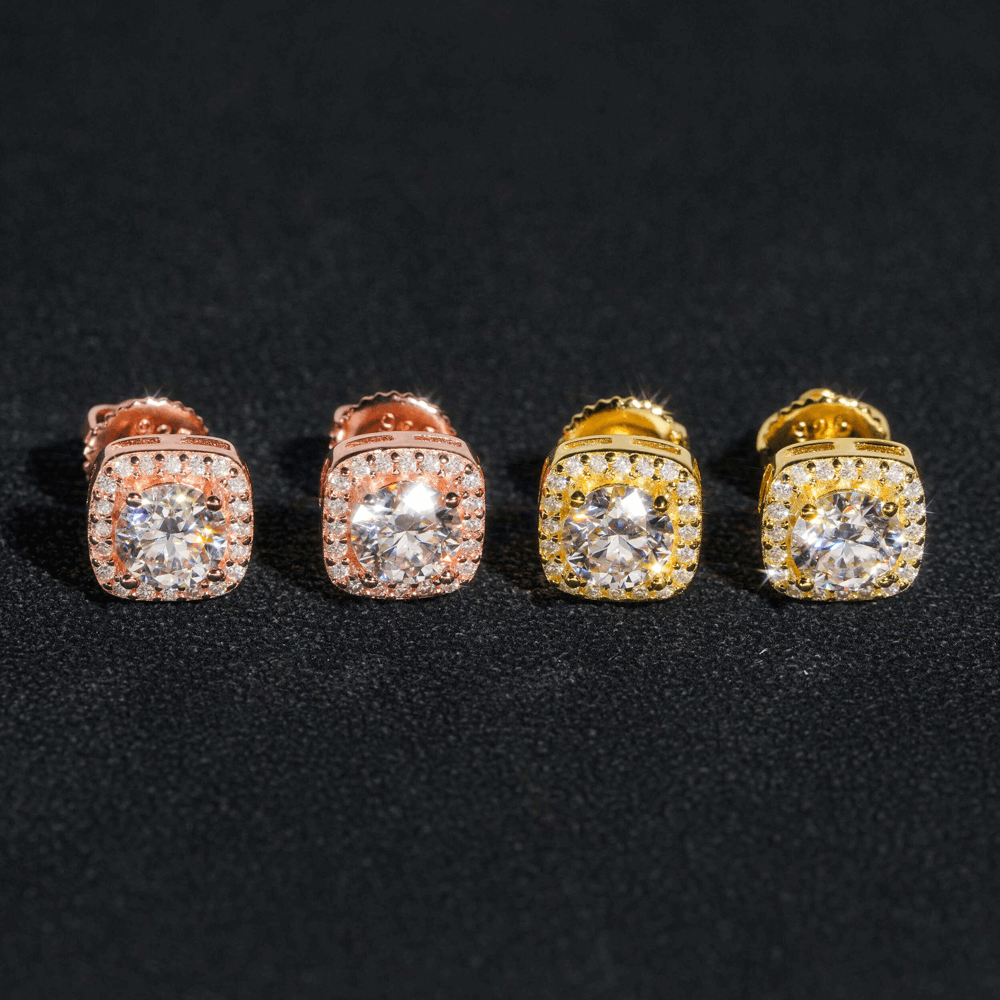 GL Hiphop Jewelry 925 Sterling Silver VVS Round Cut Moissanite Stud Earring