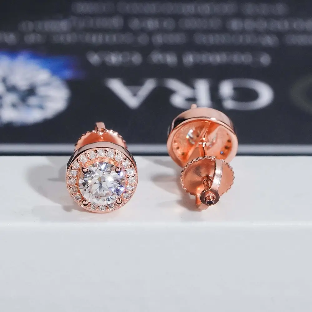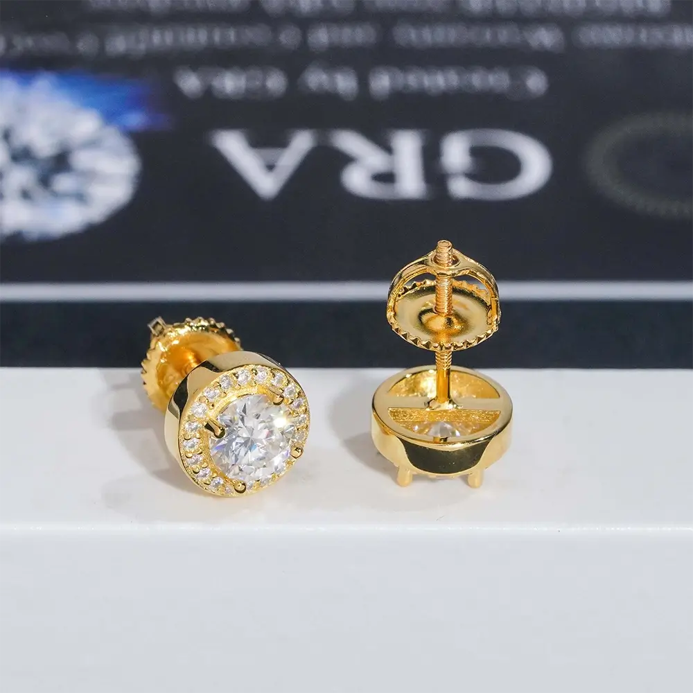GL Hiphop Jewelry 925 Sterling Silver VVS Round Cut Moissanite Stud Earring