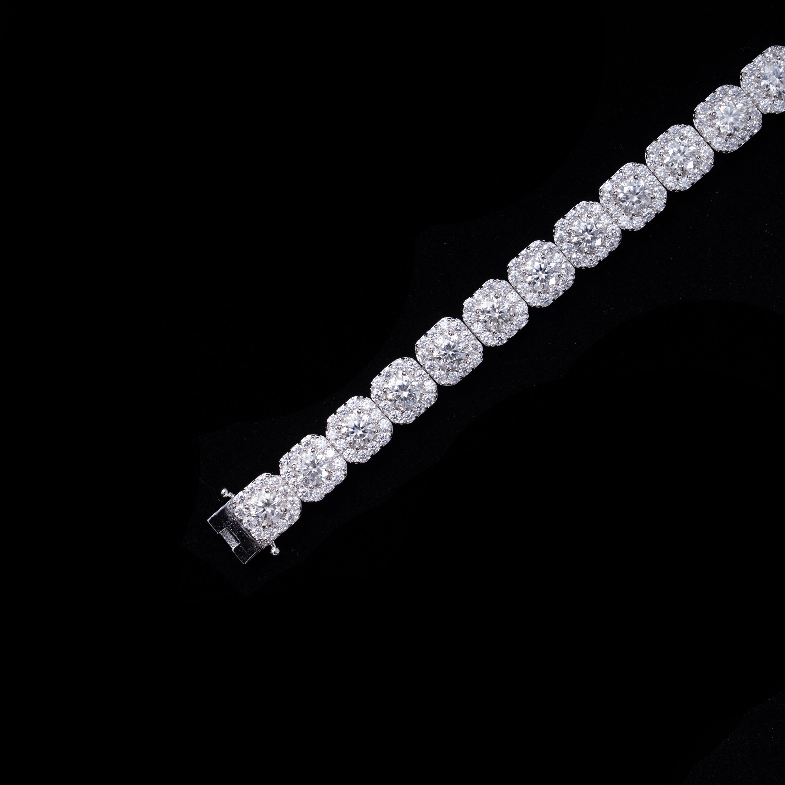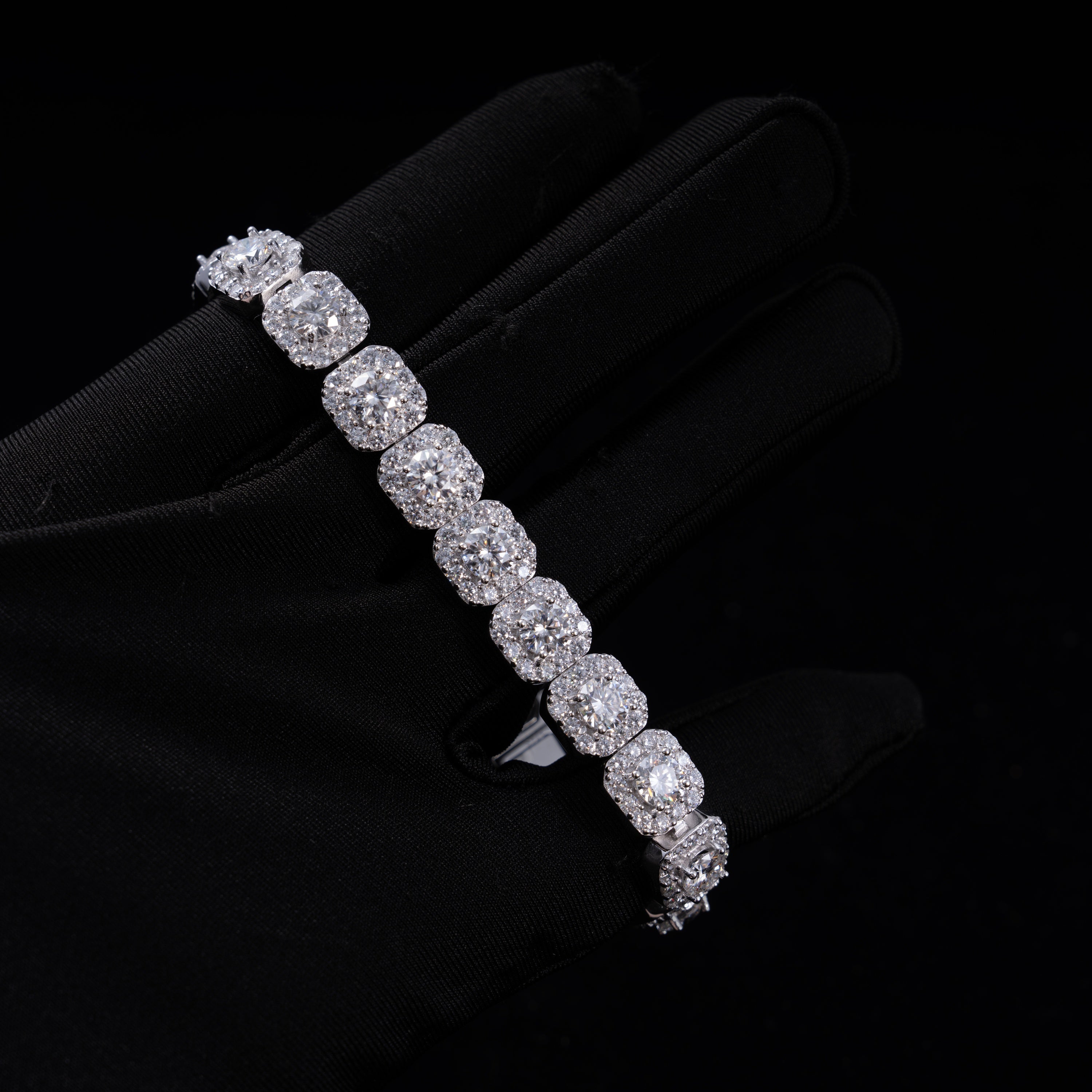 GL Iced Out 10MM Halo Square VVS Moissanite Silver Tennis Chain