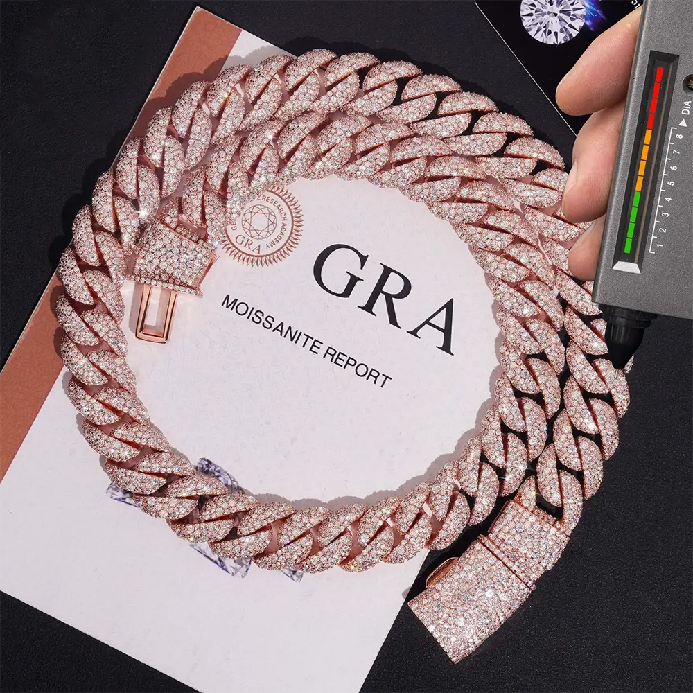 15mm 3 Rows Miami Moissanite Cuban Link Chain