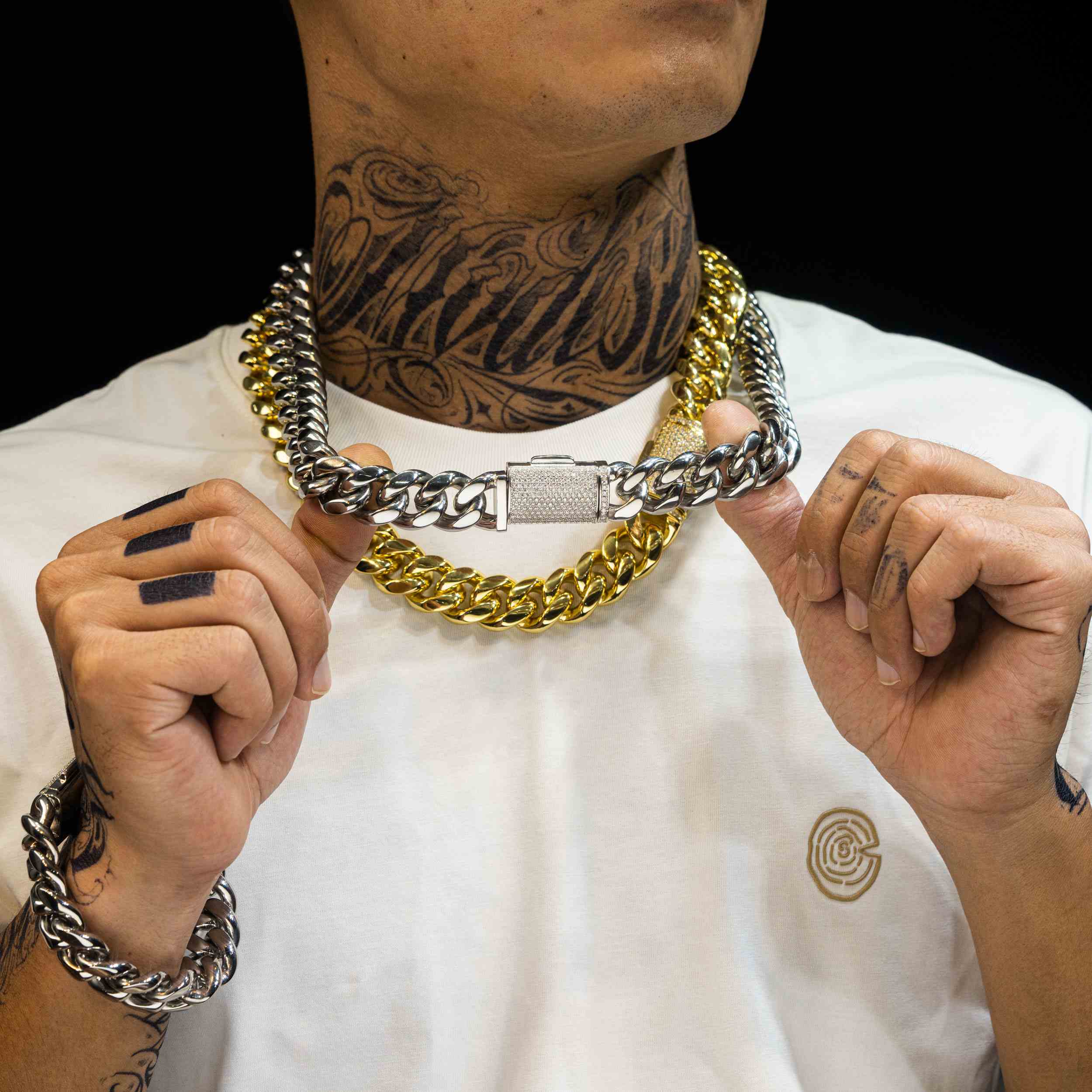 6mm 8mm 10mm 12mm 14mm Stainless Steel Silver Button end Cuban Chain Bracelet