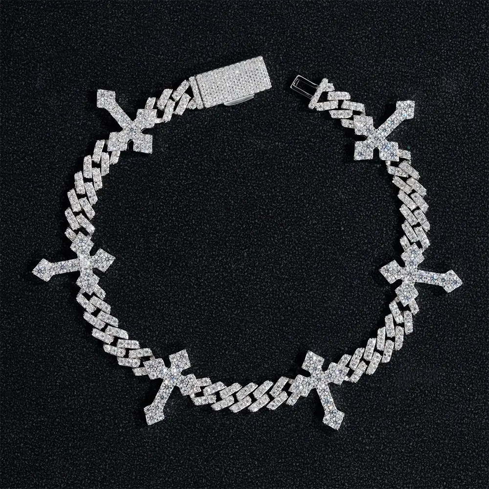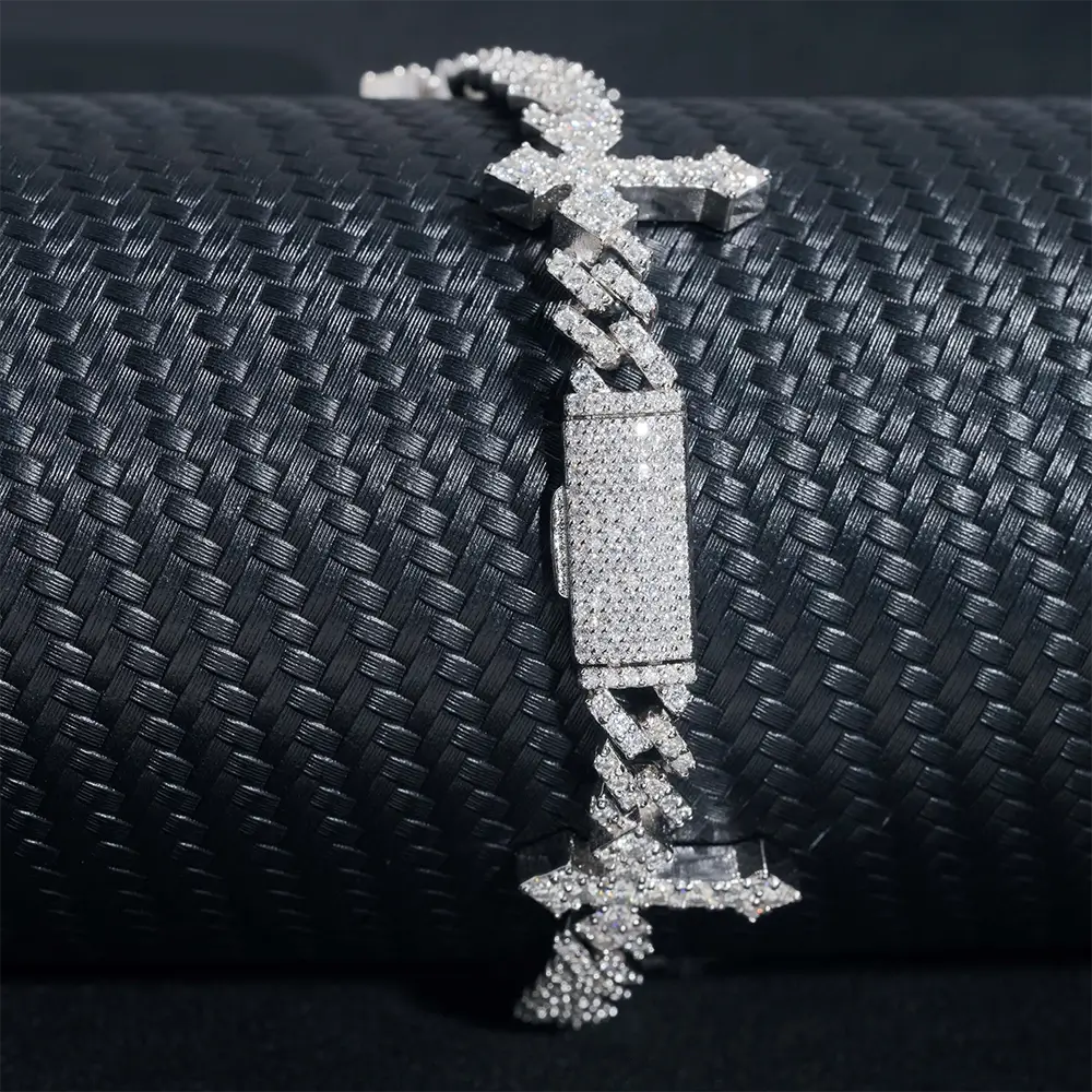 6mm Moissanite Cuban Chain with 13mm Cross Link - 16K Gold