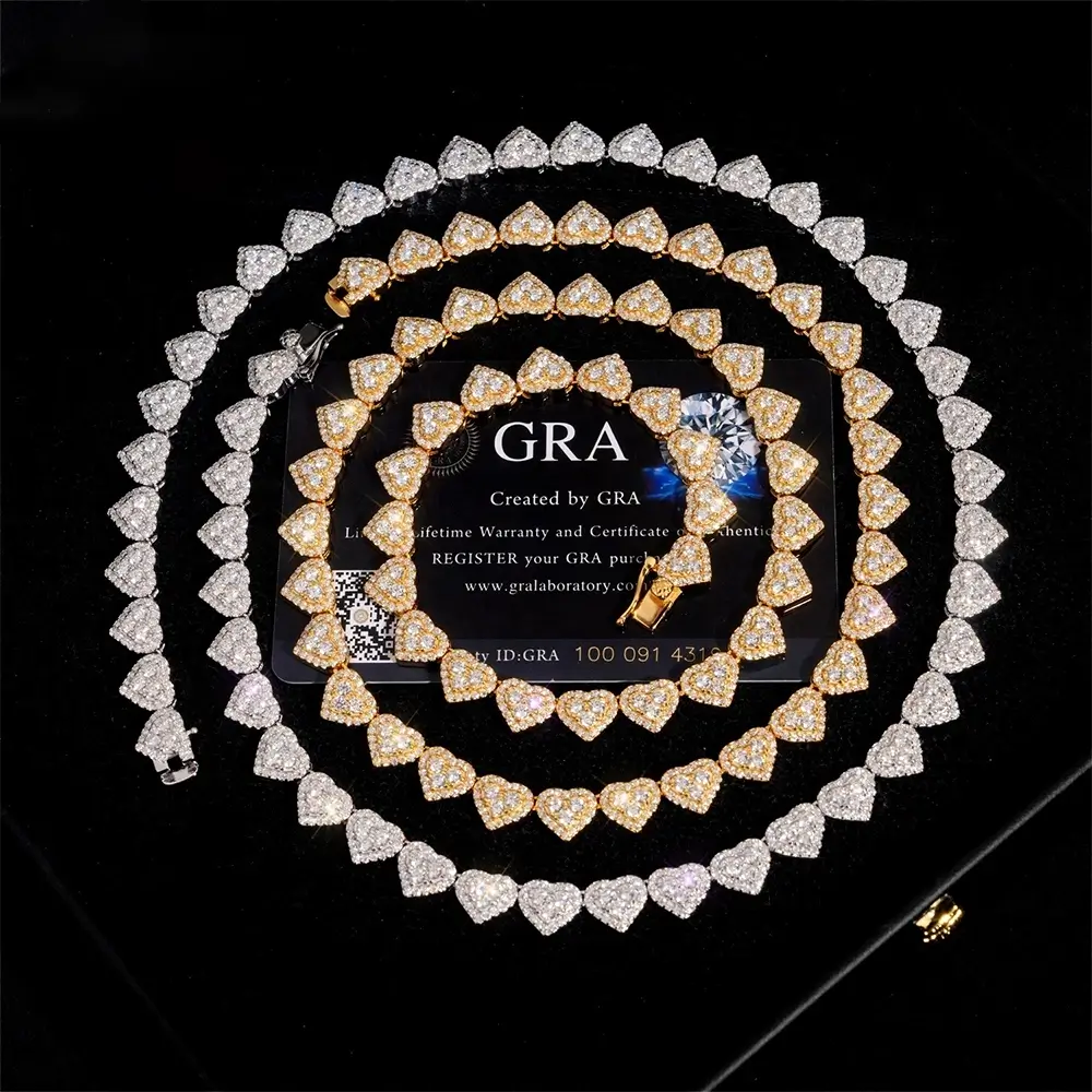 8MM Heart Shaped VVS Moissanite Cuban Link Chain