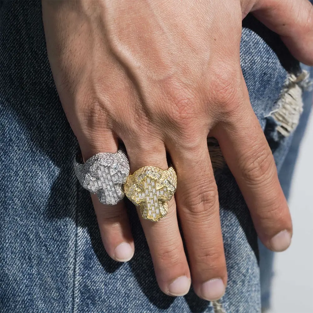 Make a stylish statement with this Cross Moissanite 925 sterling silver hip hop ring. Crafted with 925 sterling silver, this ring features a classic cross design, detailed with moissanite gems for a timeless, luxurious look. Ideal for everyday wear, this ring is sure to make a fashion statement.