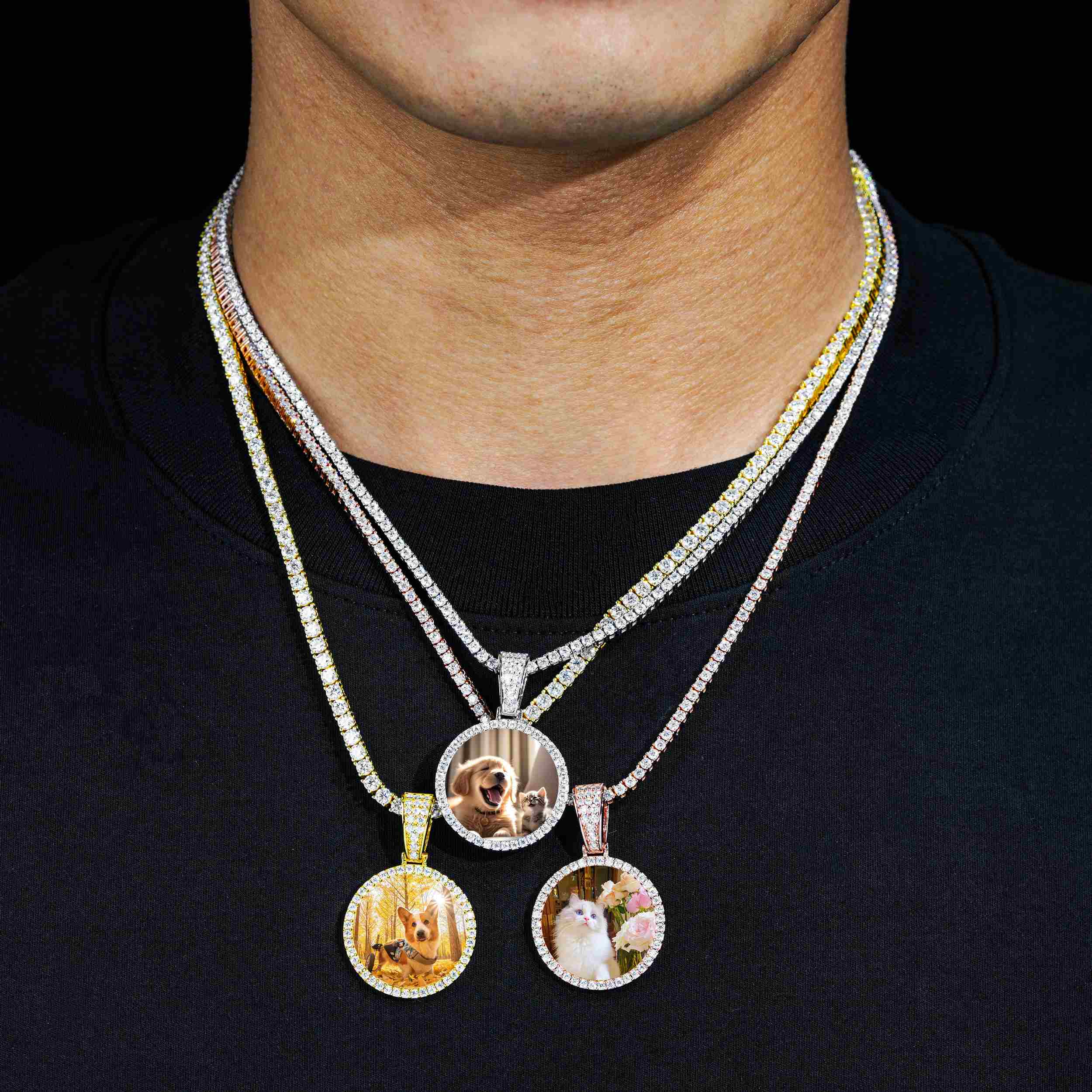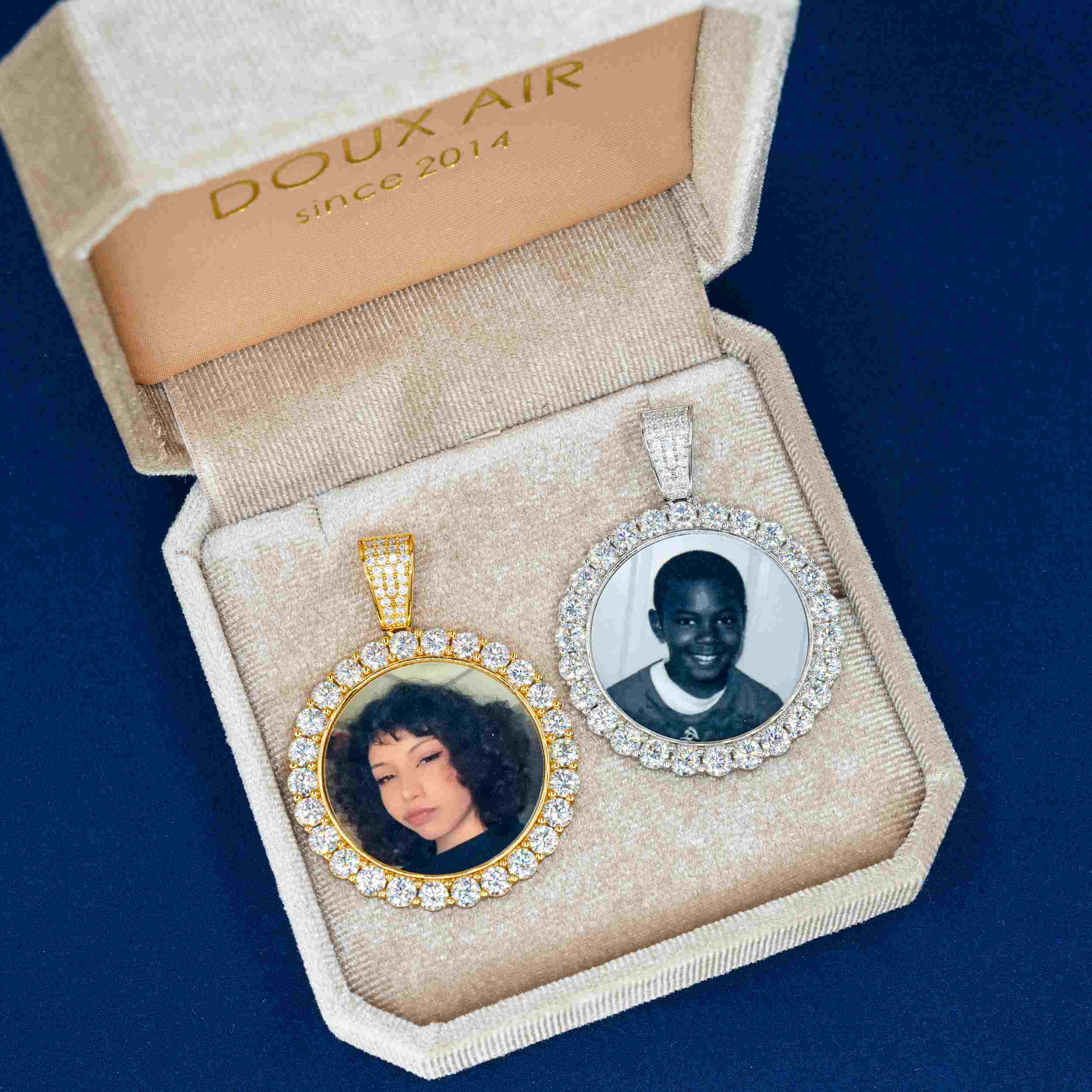 Adorn yourself with a Custom Photo Pendant VVS Moissanite Stone Pendant.