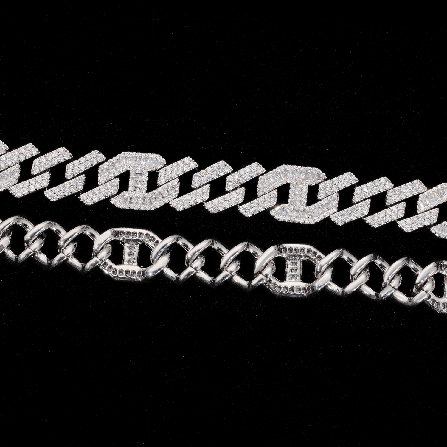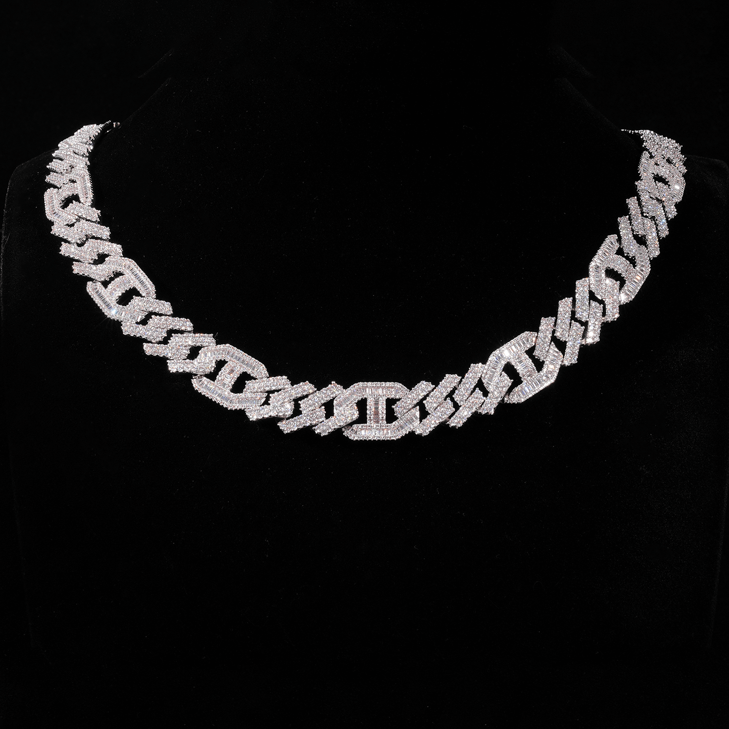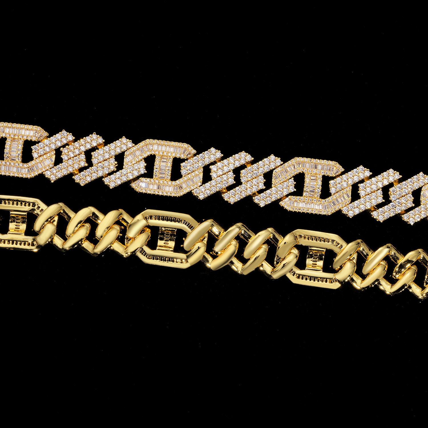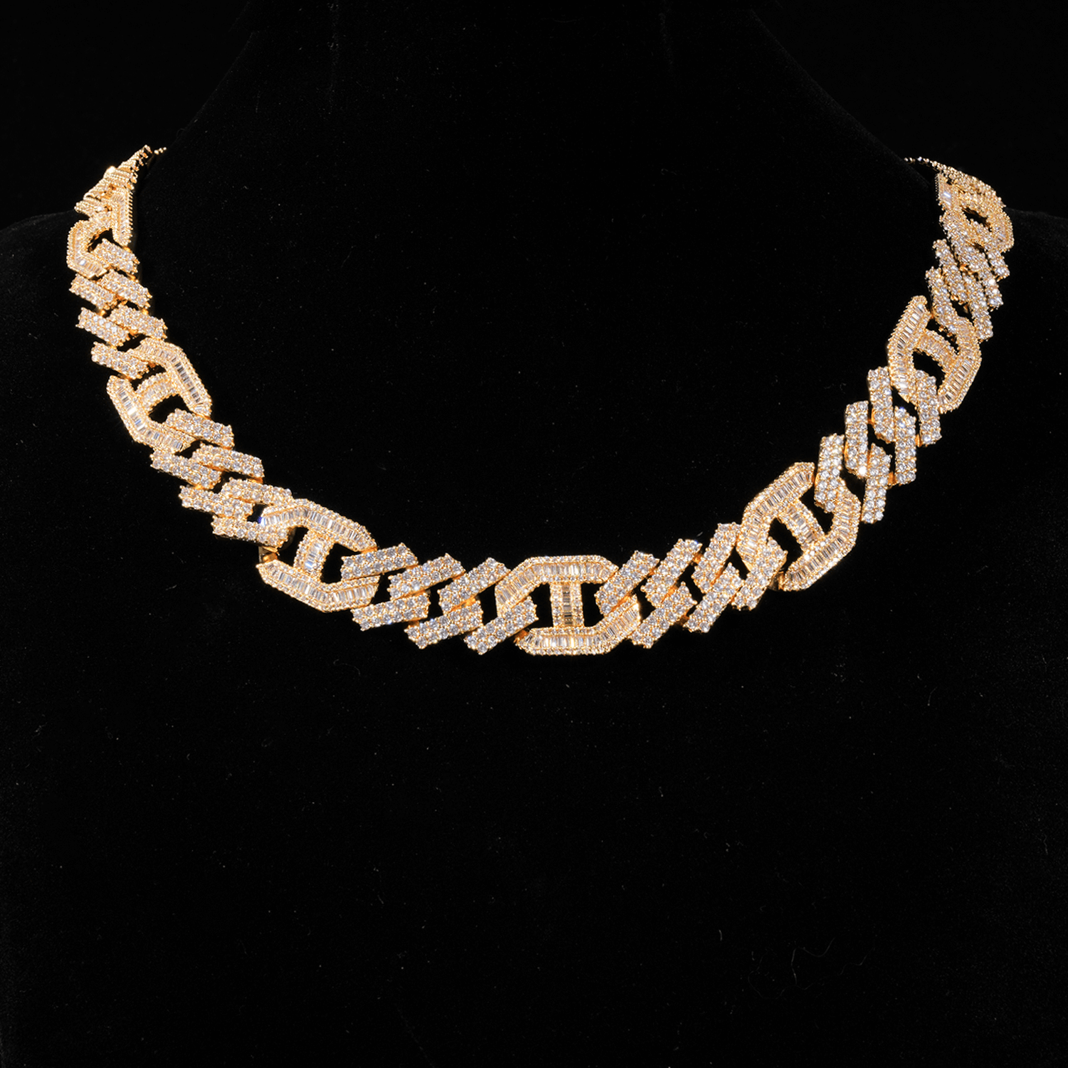GL 16mm Prong Baguette Cuban Link Chain 5A+ Diamond 16k Gold Plated
