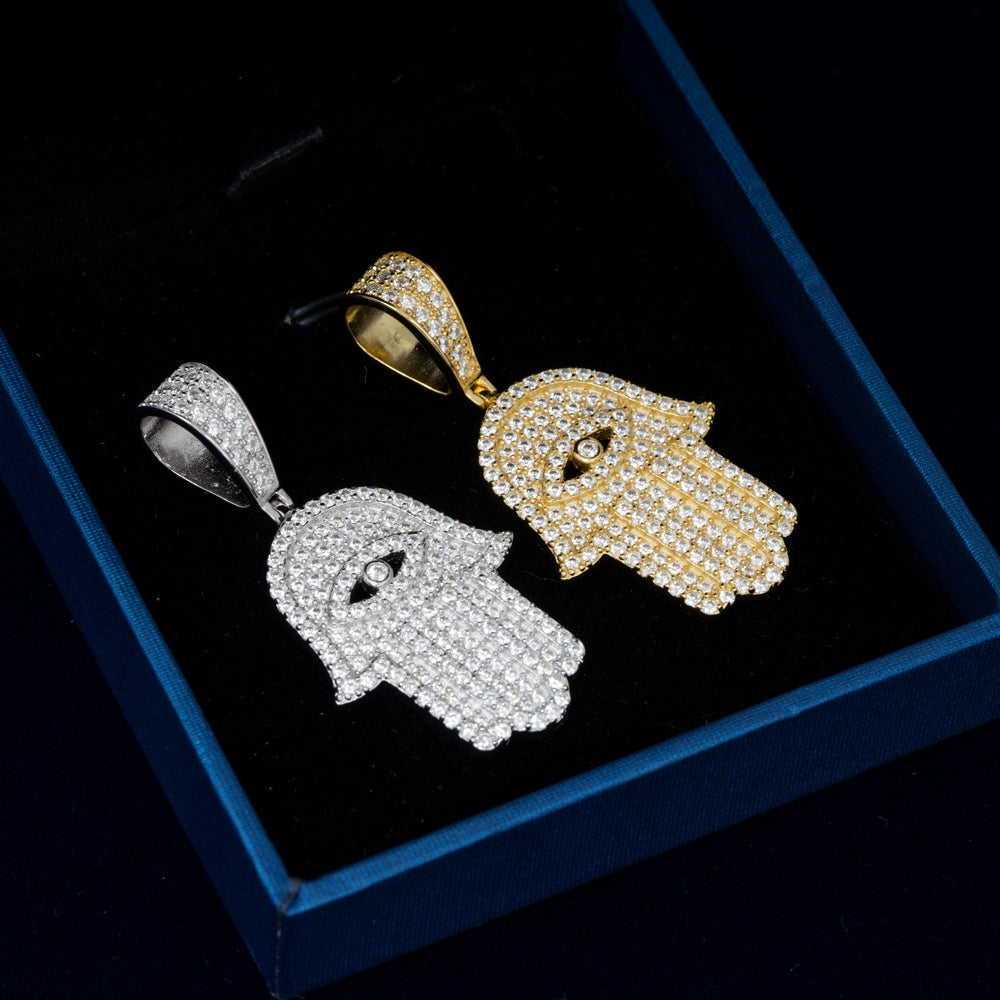 GL Eyes Hand of Fatima Hip Hop Jewelry S925 Silver Moissanite Pendant
