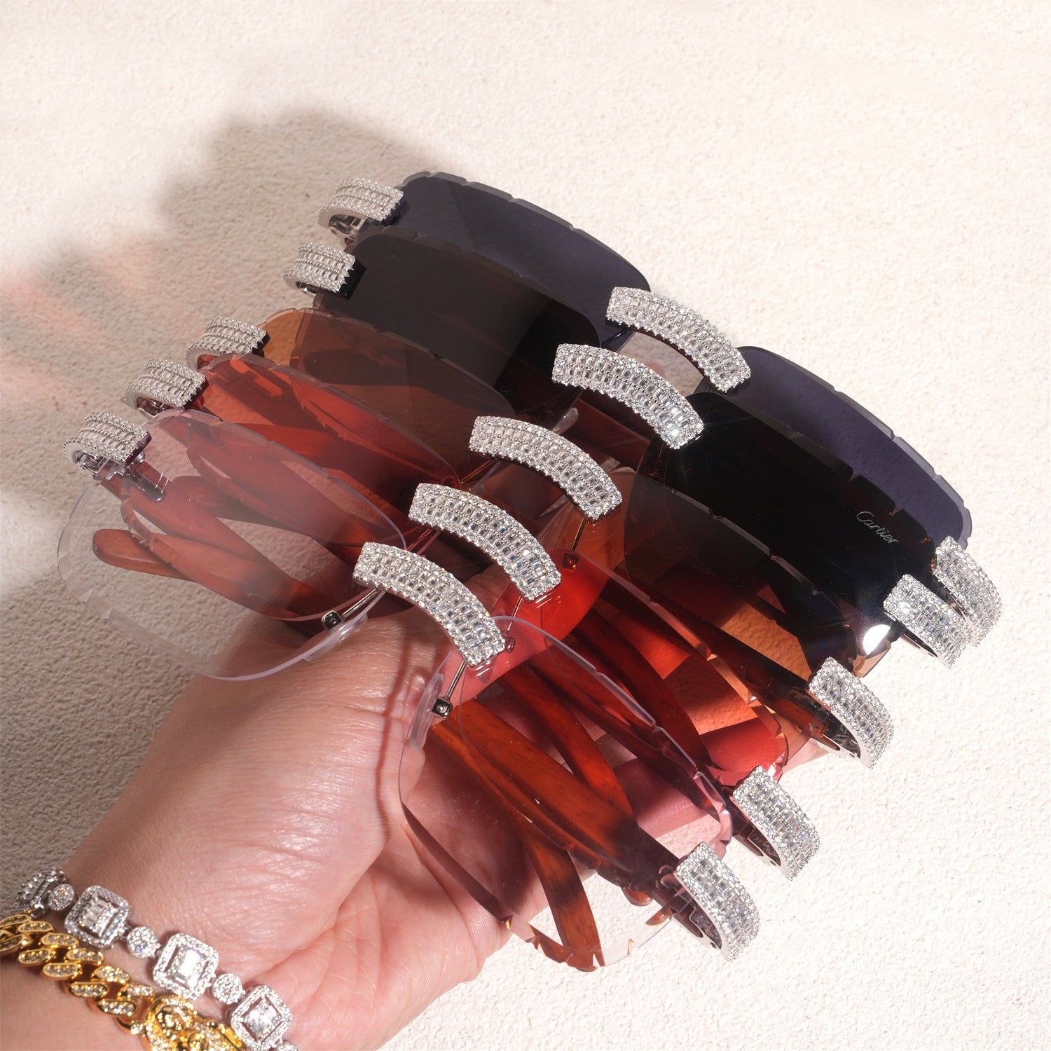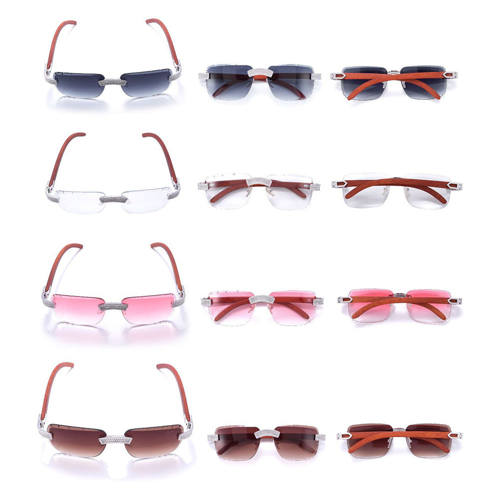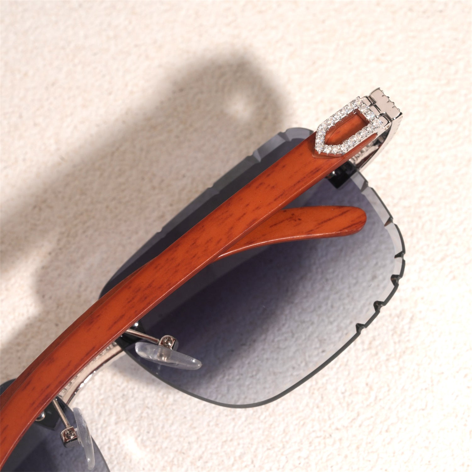 GL Hip-Hop Rimless Sunglasses VVS Moissanite Inlay Bridge & Multicolor Lenses Wooden Arms