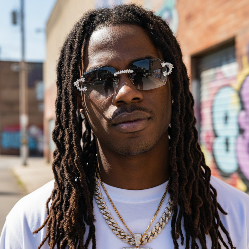 GL Hip-Hop Rimless Sunglasses VVS Moissanite Inlay Metal Arms & Multicolor Lenses