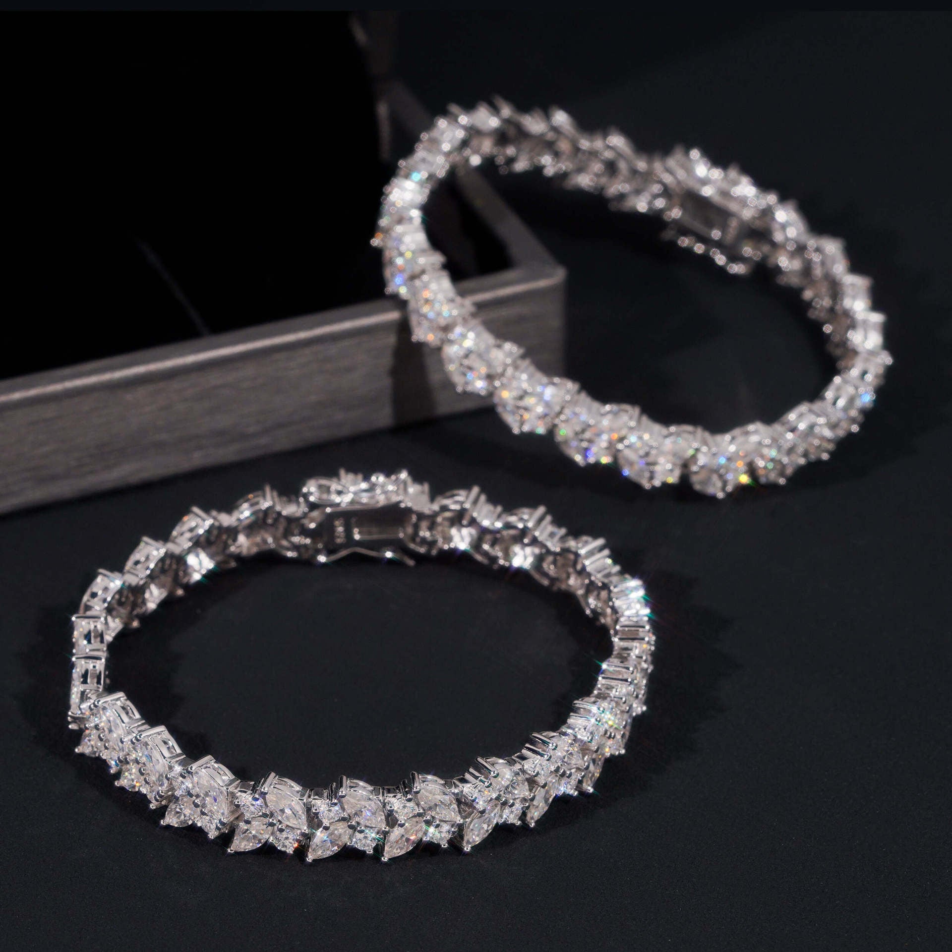 GL Iced Out 925 Silver VVS Marquise Moissanite Bracelet Tennis Chain