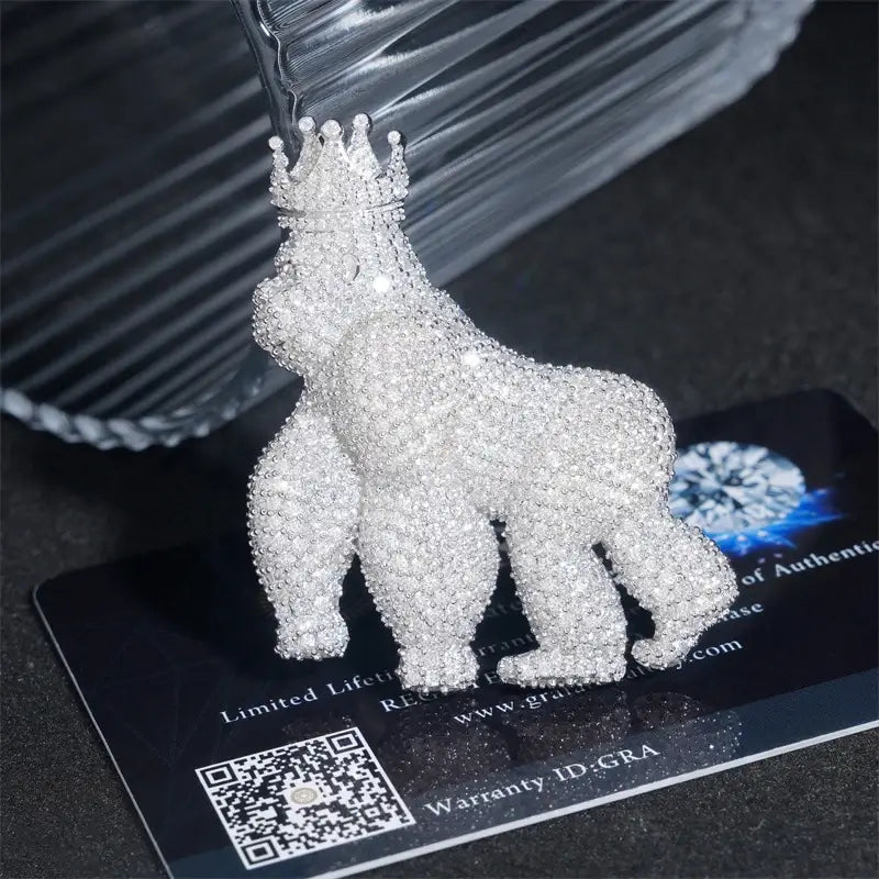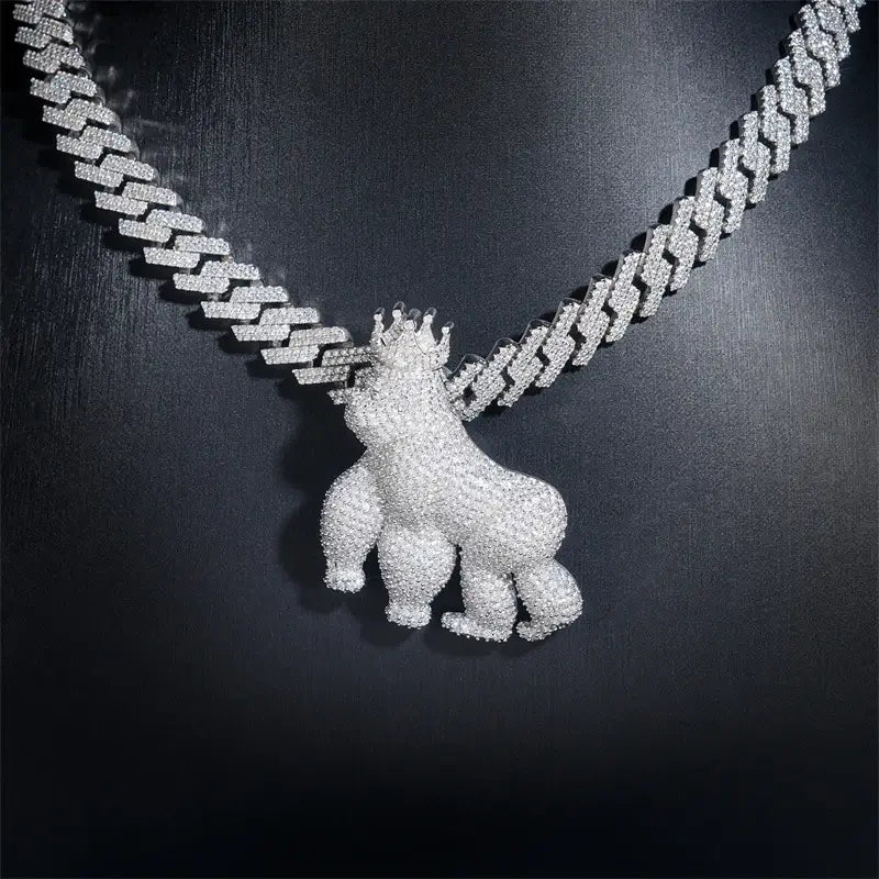 GL Iced Out Crown Gorilla Pendant Full VVS Moissanite Diamond