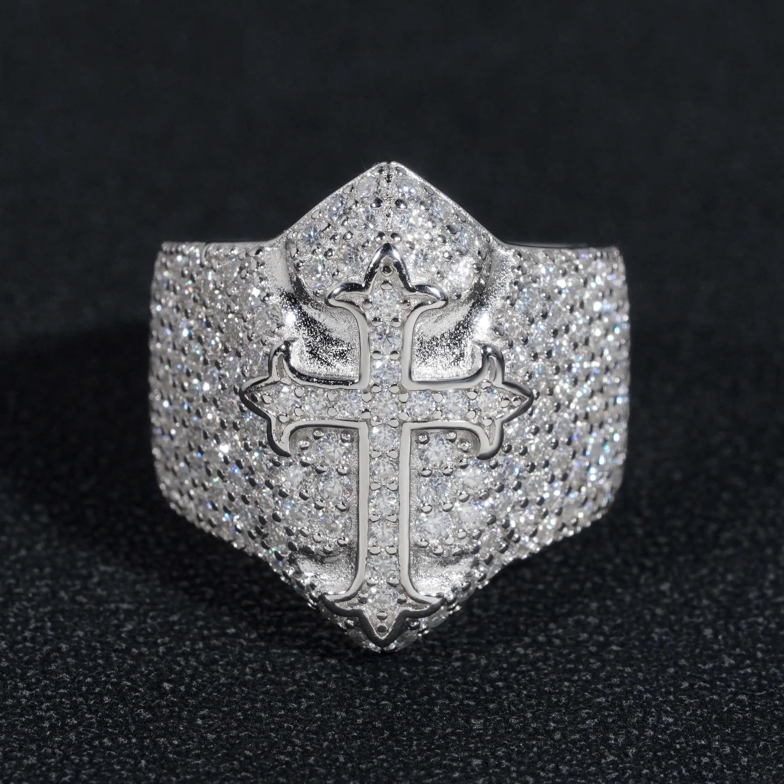 GL Iced Out Gothic Tupac Cross Moissanite Diamond Ring