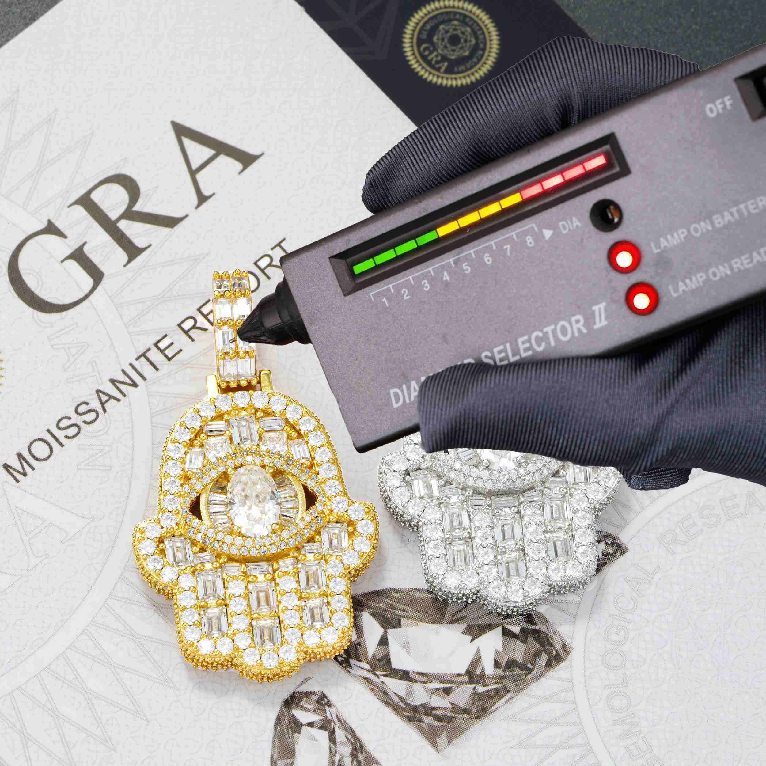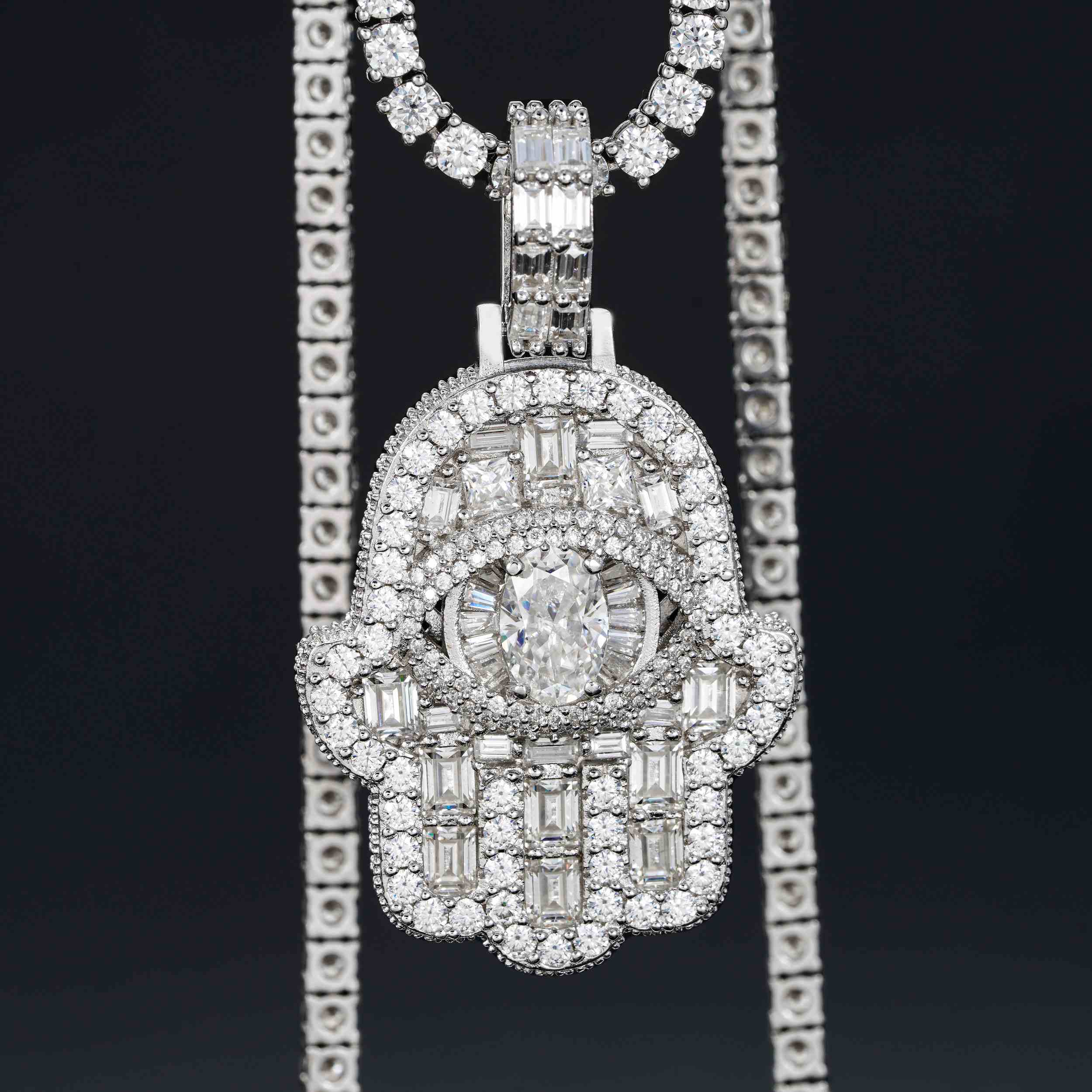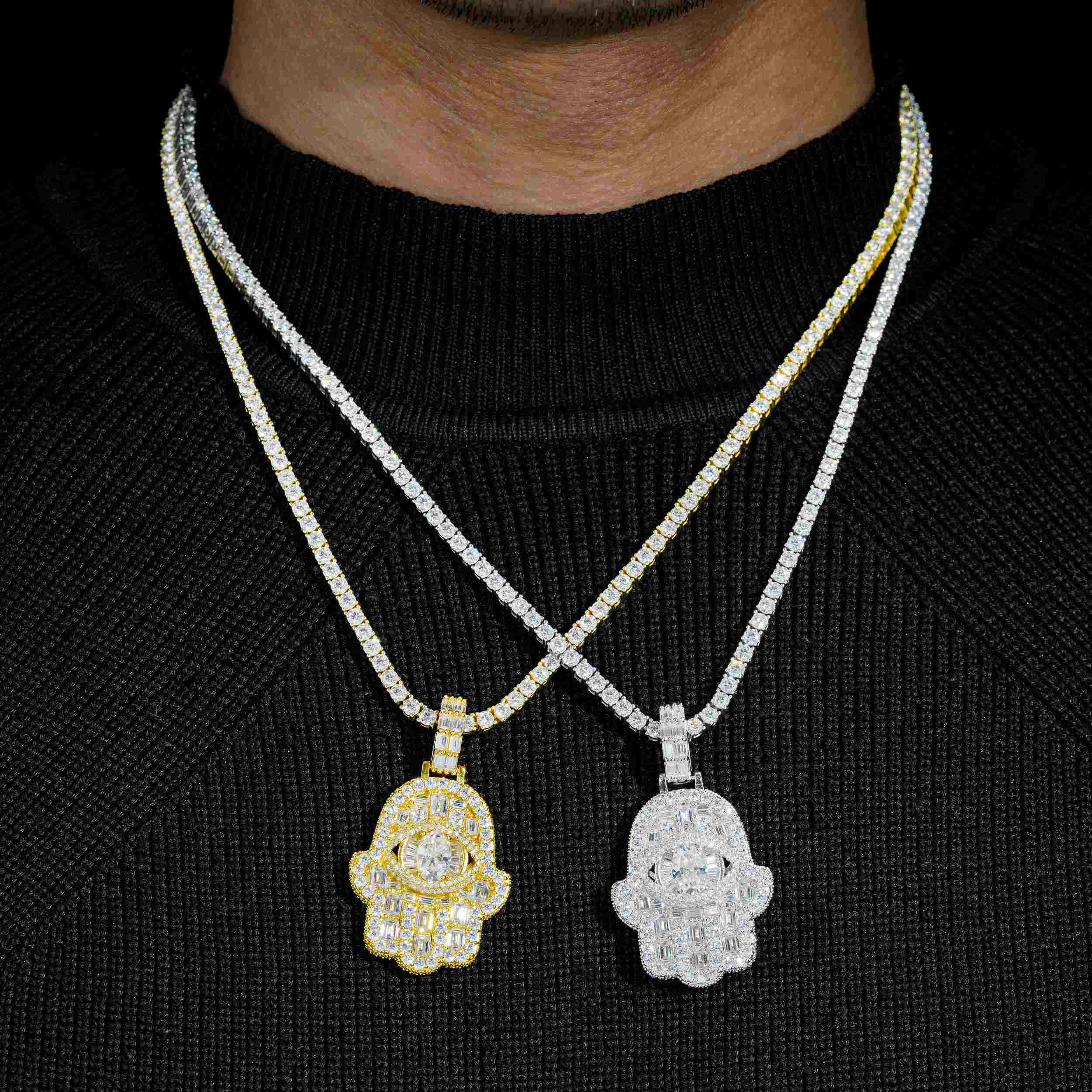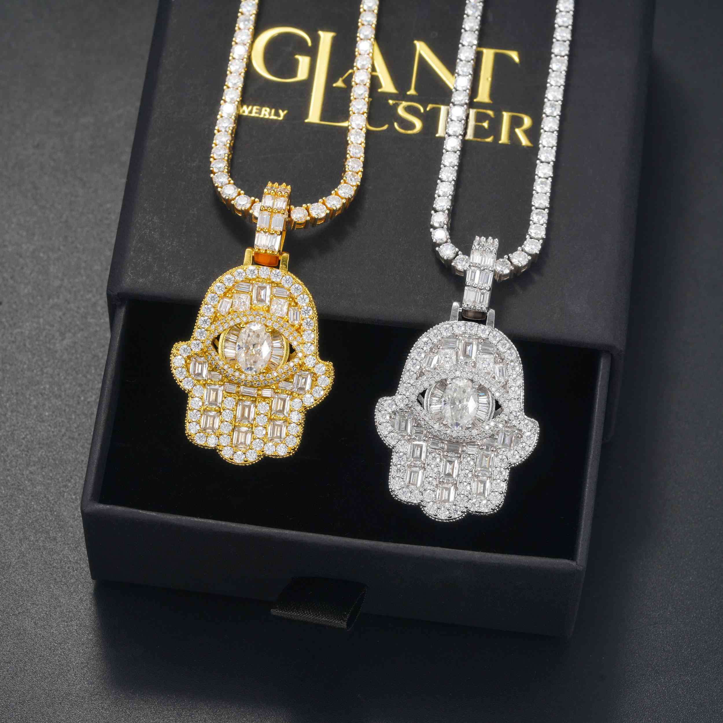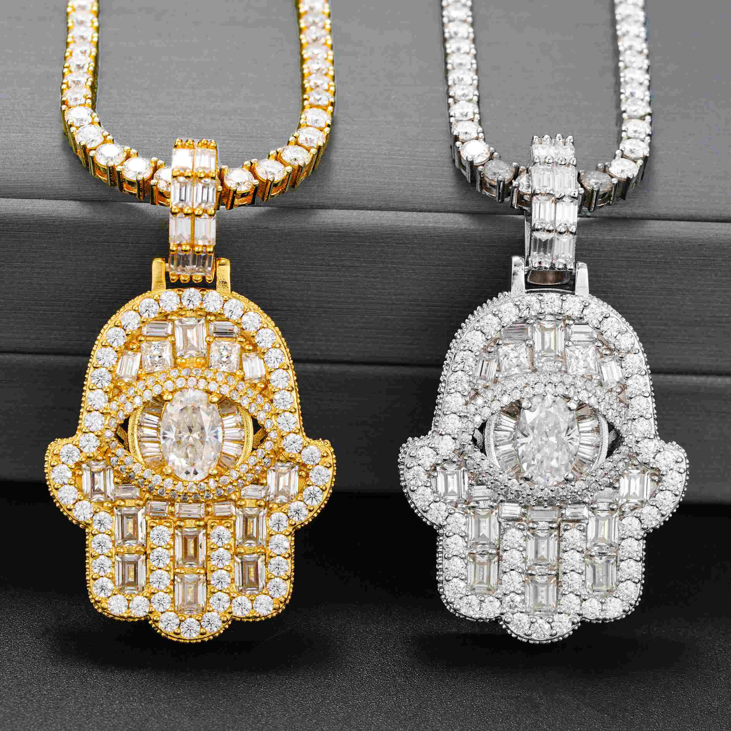 GL Iced Out Hand of Fatima Brass 5A+ Diamond Pendant