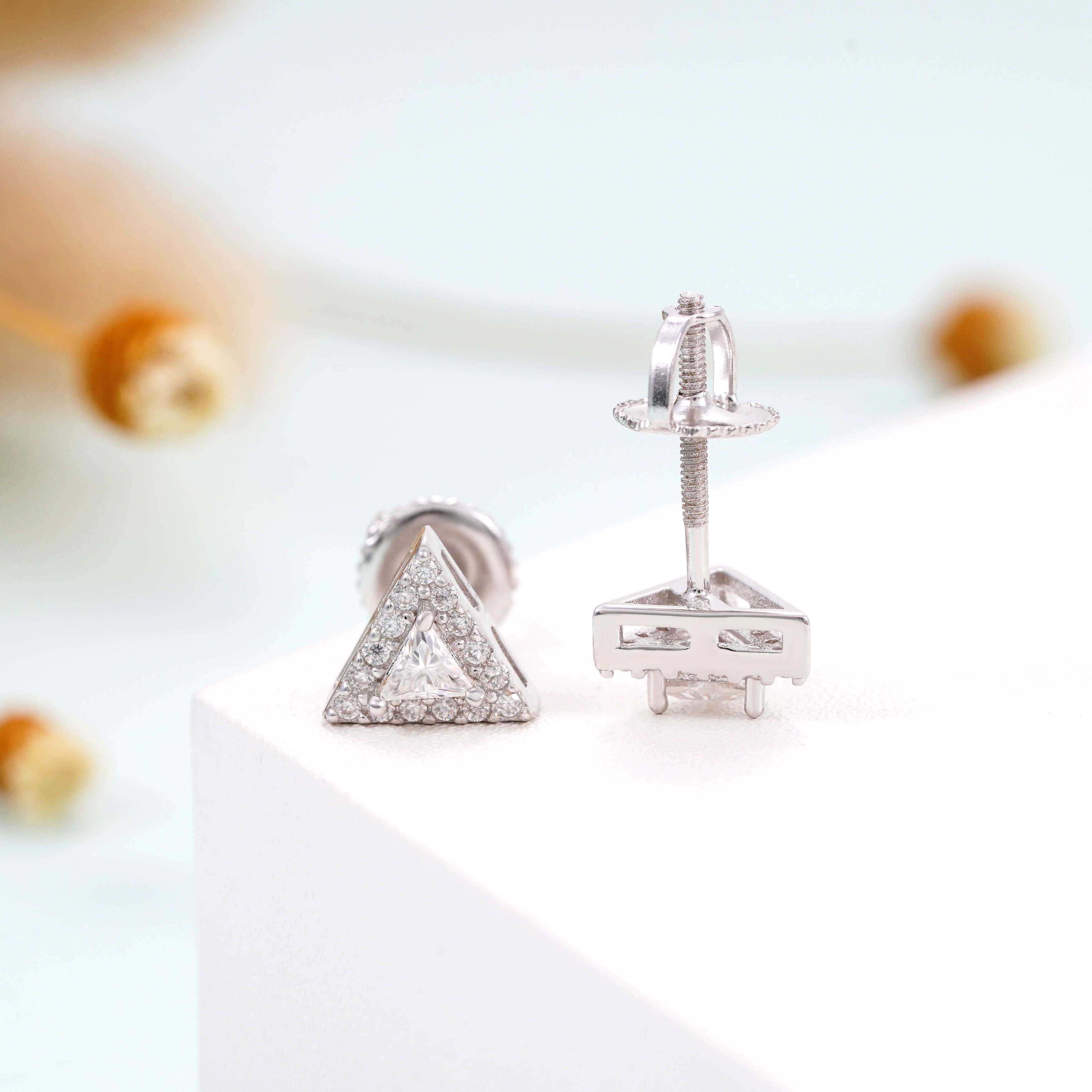 GL Sterling Silver Triangle Shaped Moissanite Stud Earrings