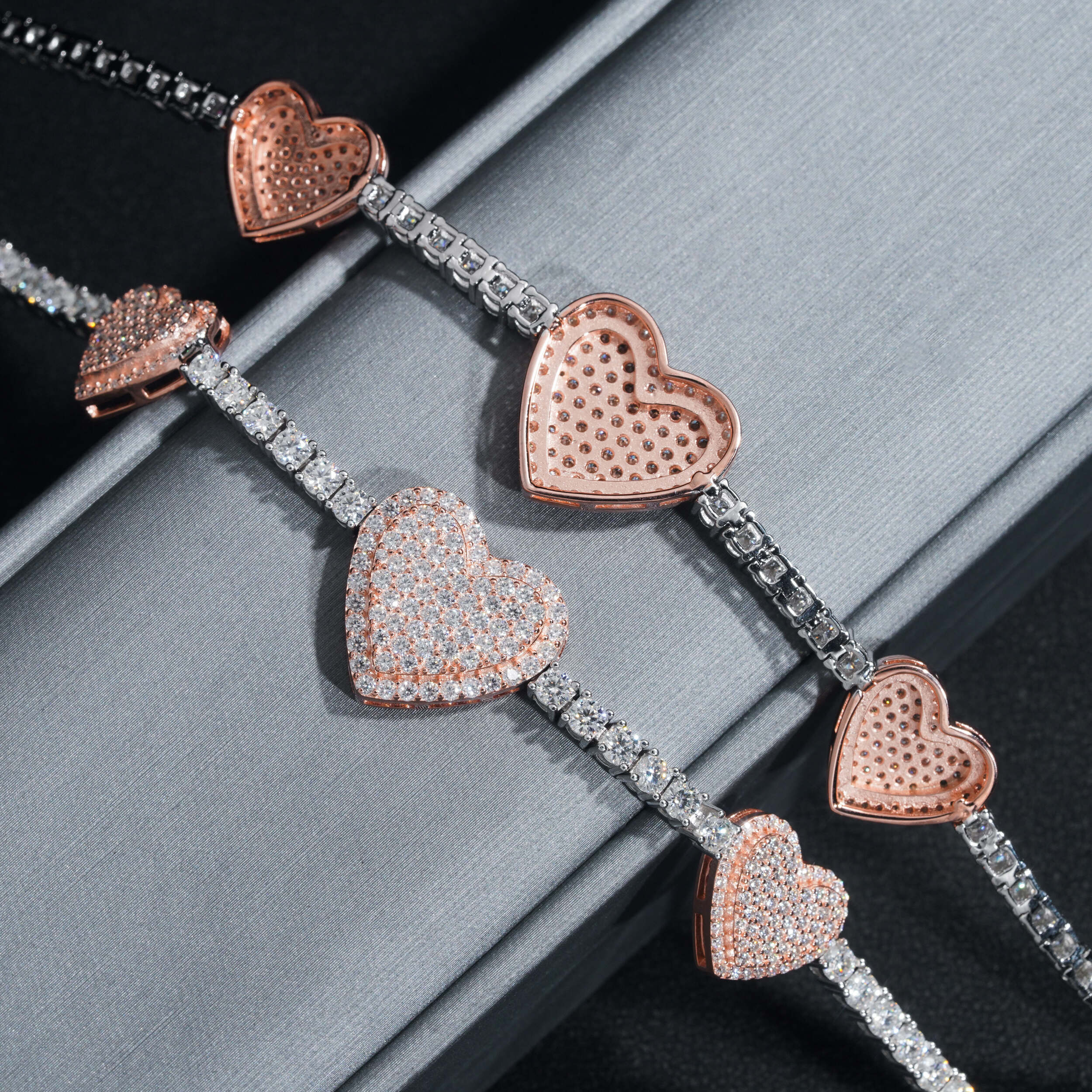 GL Heart Shaped 925 Silver VVS Moissanite Bracelet 3mm Tennis Chain