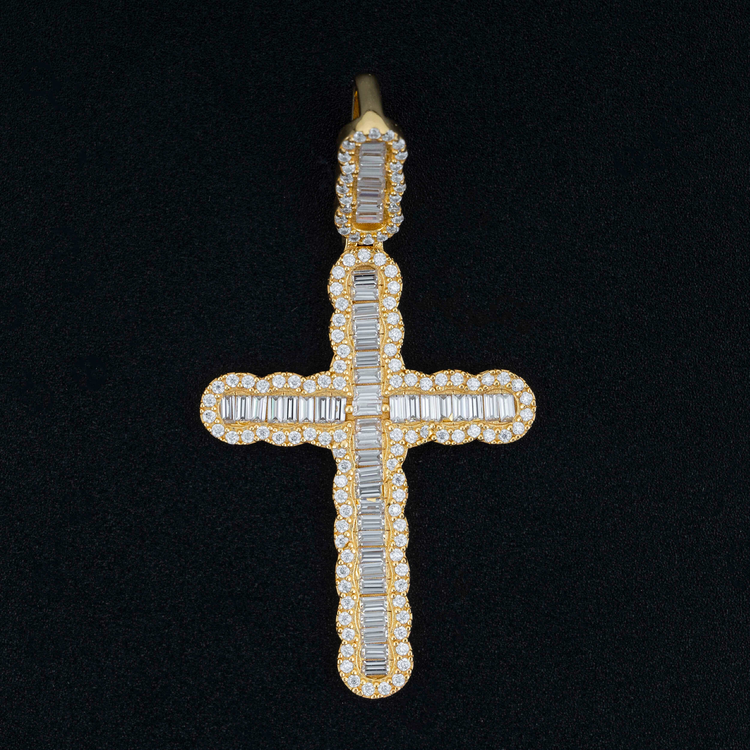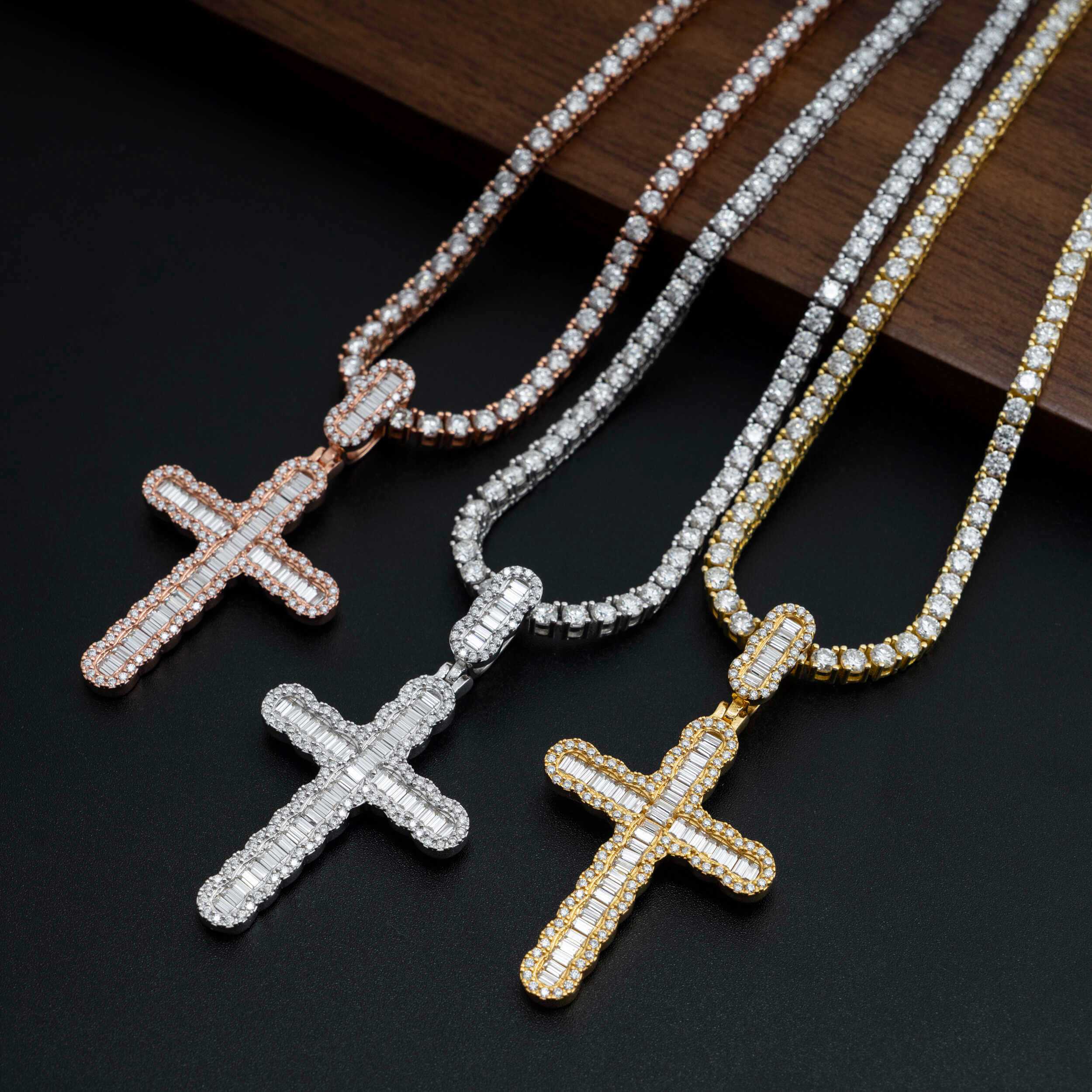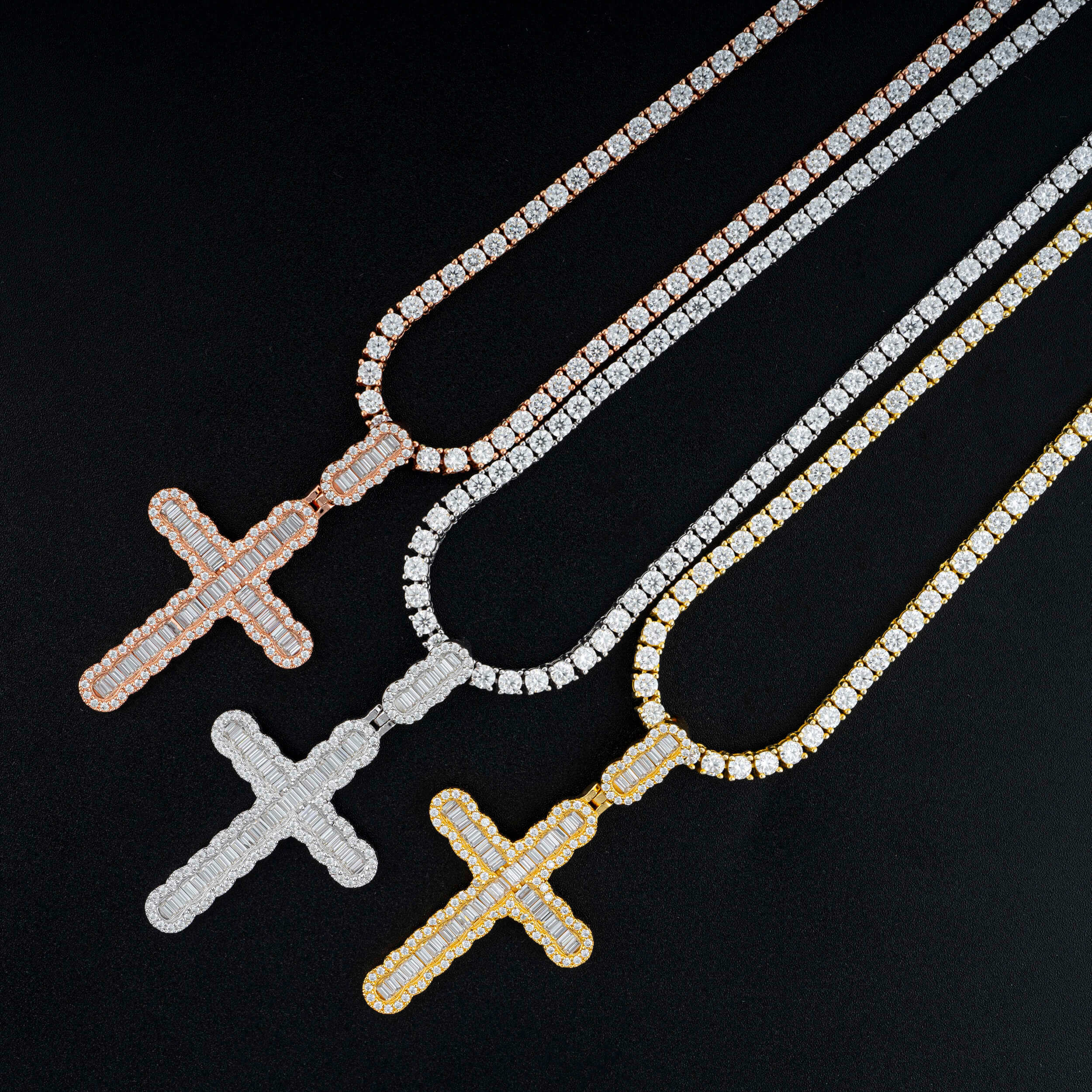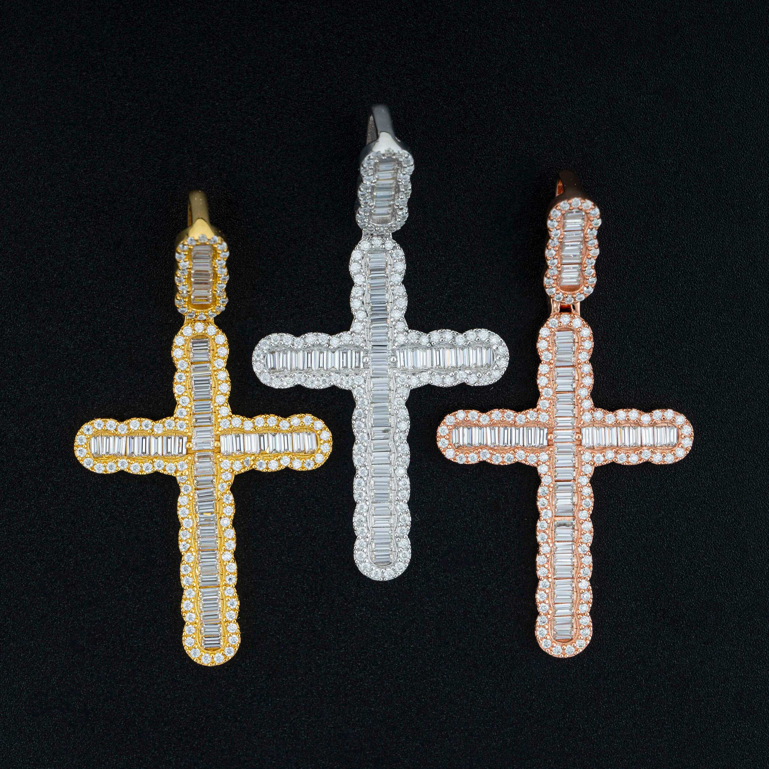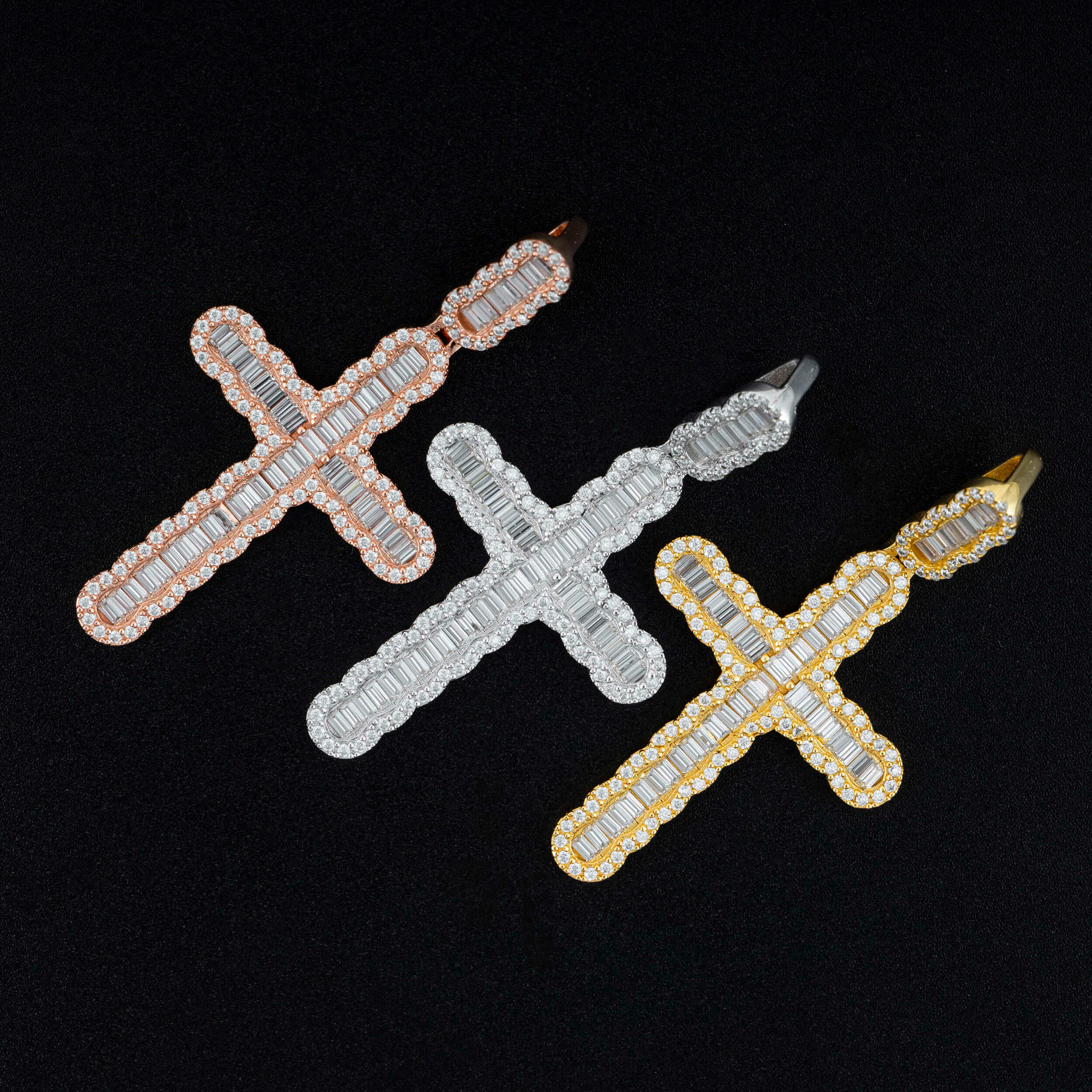 GL Hip Hop Iced Out Baguette Diamond Cross Pendan