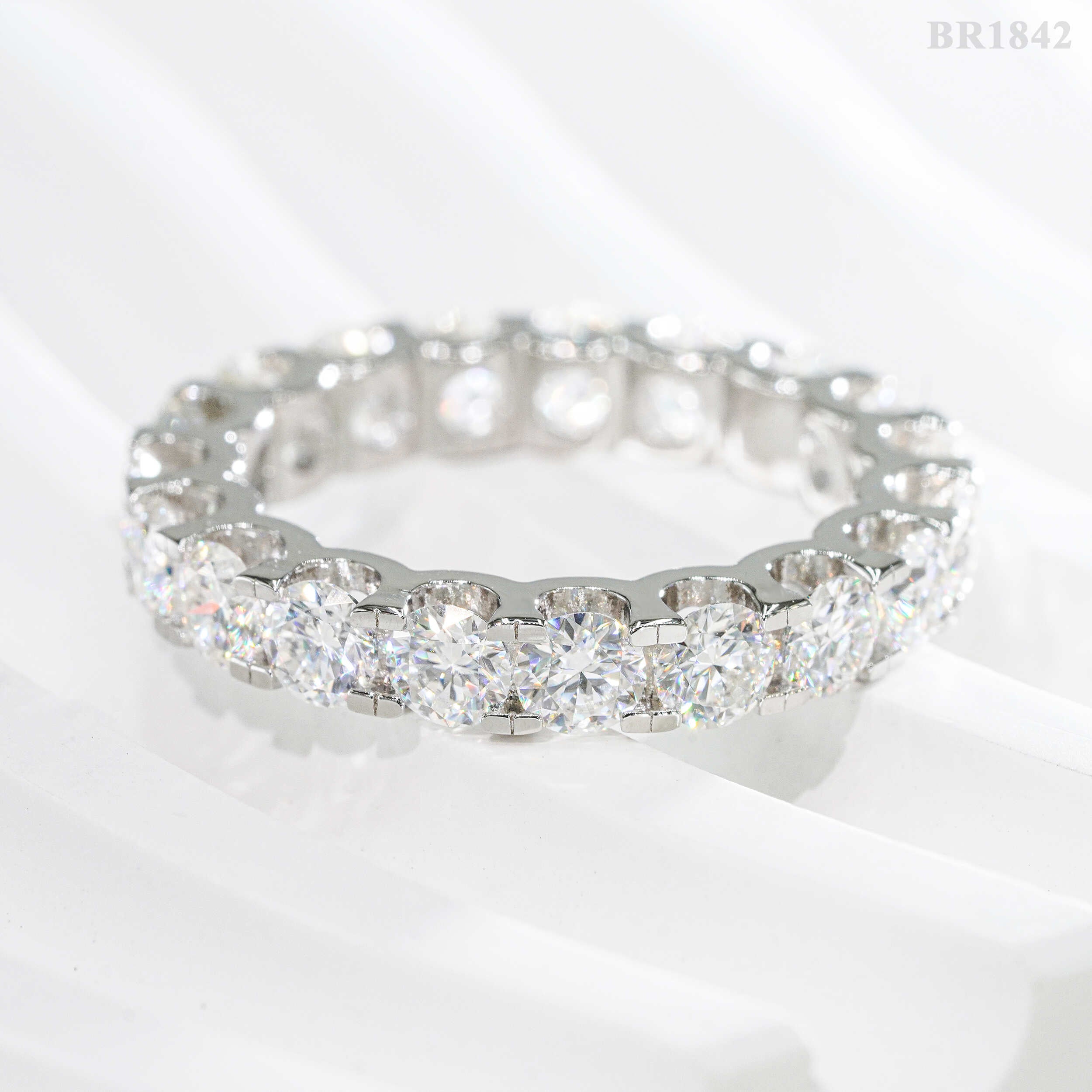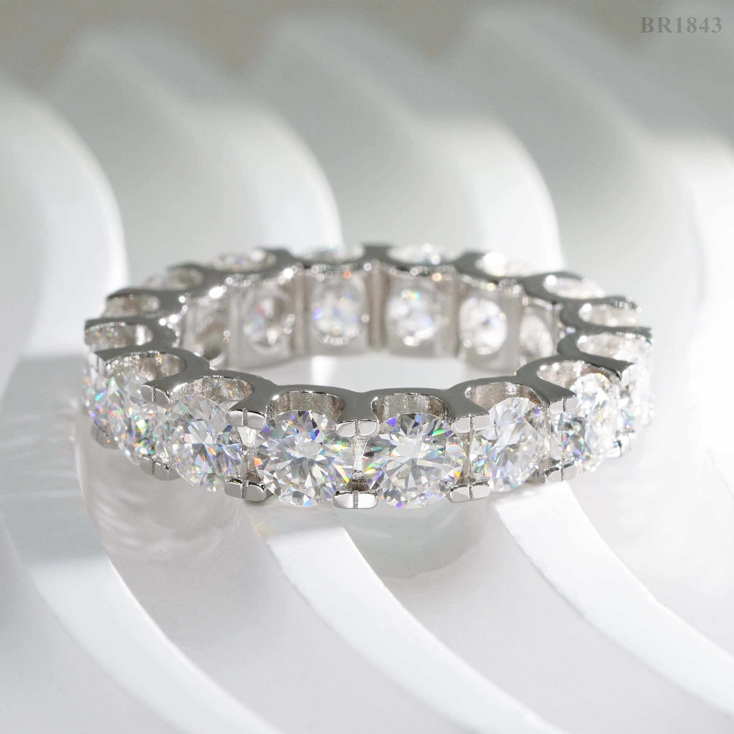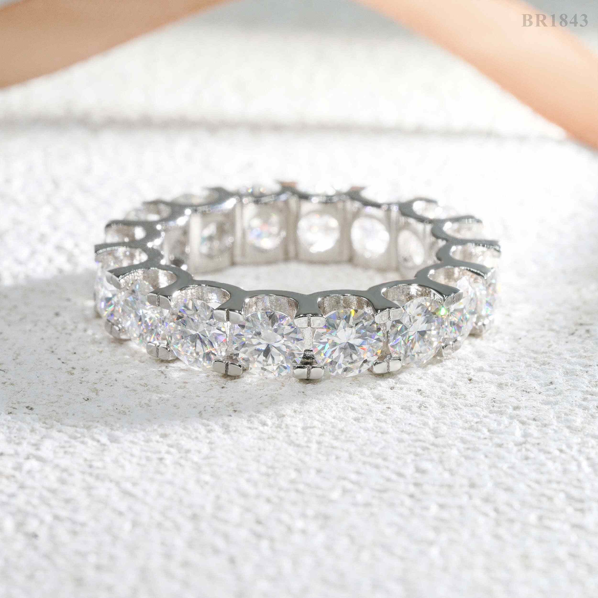 This stylish round 4mm 5mm diamond band moissanite eternity ring is crafted from 925 sterling silver and inlaid using claw setting technology. perfect for any special occasion. Let the timeless beauty of moissanite forever shine.